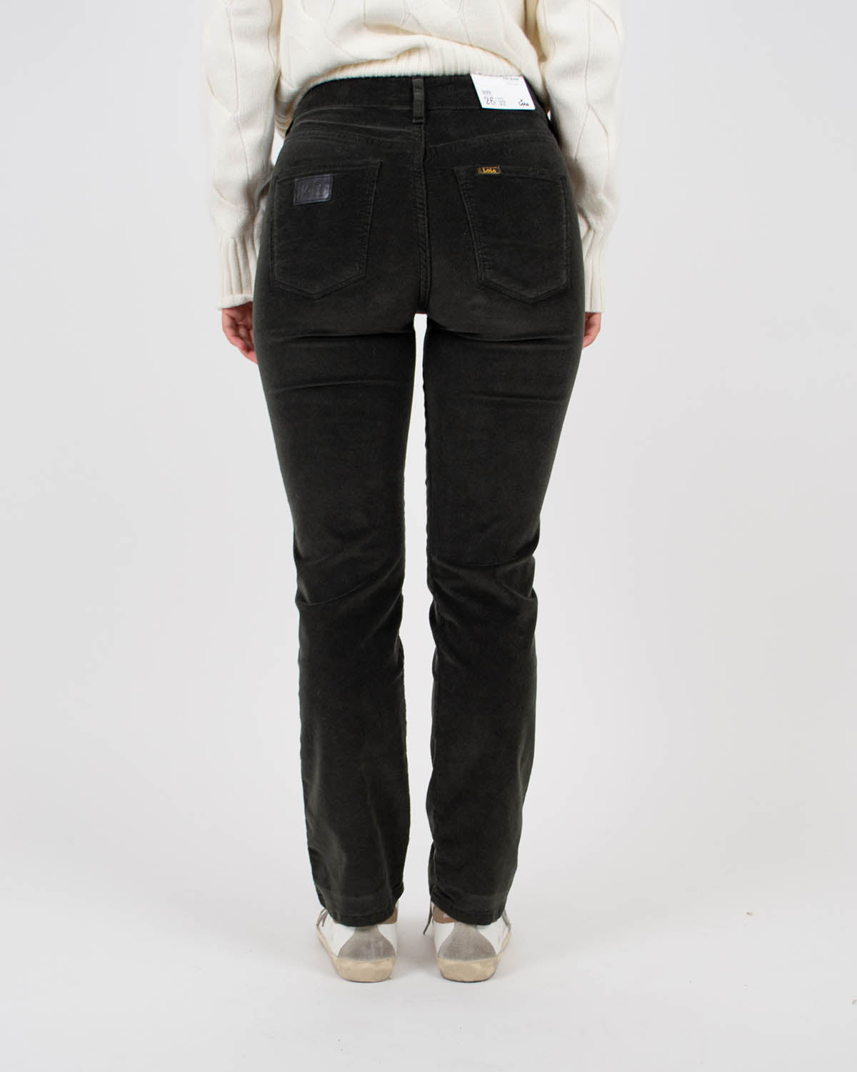 Mørk grønn bukse i kordfløyel fra Lois Jeans! Malena F Shiny Micro Rosin er en tøff bukse i myk kvalitet med behagelig stretch. Buksa har høyt liv, smale ben med sleng nederst og en cropped lengde, to lommer bak, lommer i sidene, beltehemper i linning og logodetlajer bak. Like fin til gensere og boots i hverdagen som til en bluse og hæler i penere anledninger!