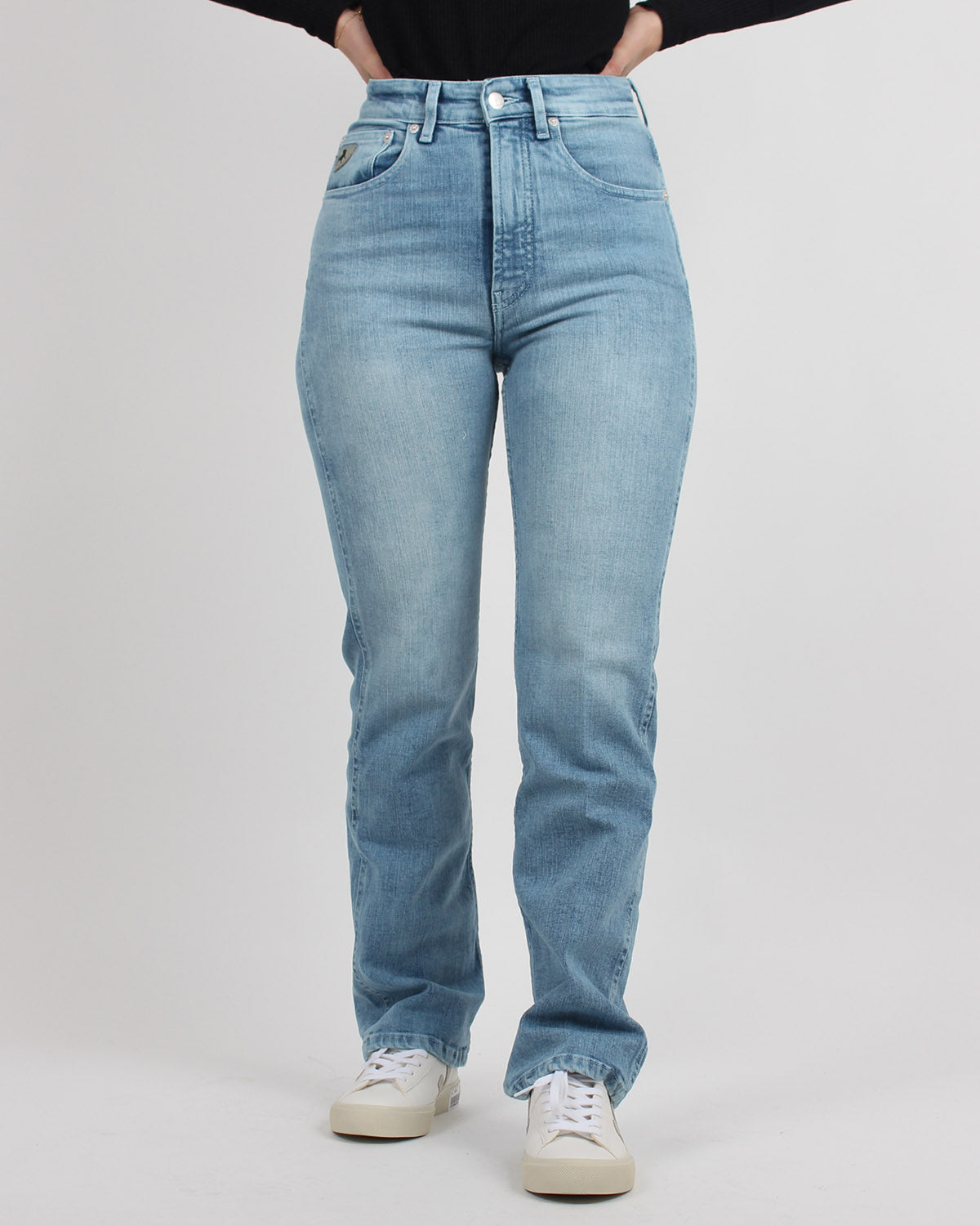Lys blå dongeribukse fra Lois Jeans! River Stone Bleach er en jeans med høyt liv og lange, rette ben. Buksen er i stødig kvalitet med litt stretch, og er både behagelig og pen på. Klassiske detaljer som hemper til belte i linning, fem lommer, logodetalj på lomme samt glidelås- og knappelukking i gylf gjør buksen både tidløs og praktisk.