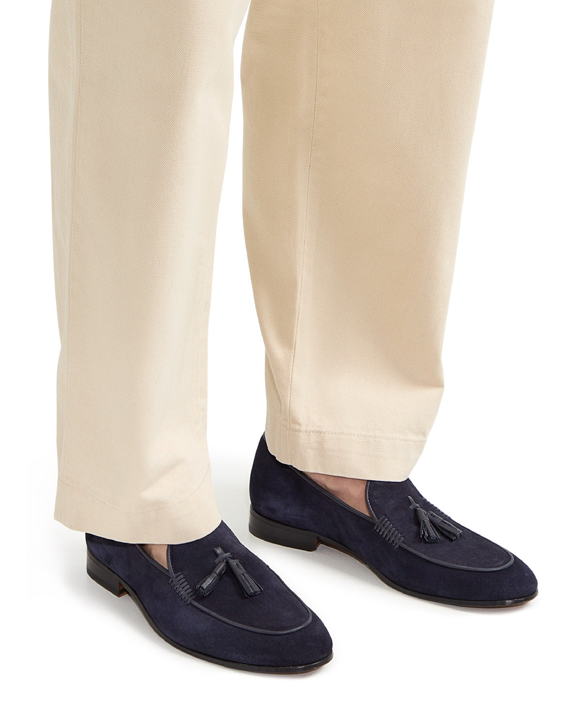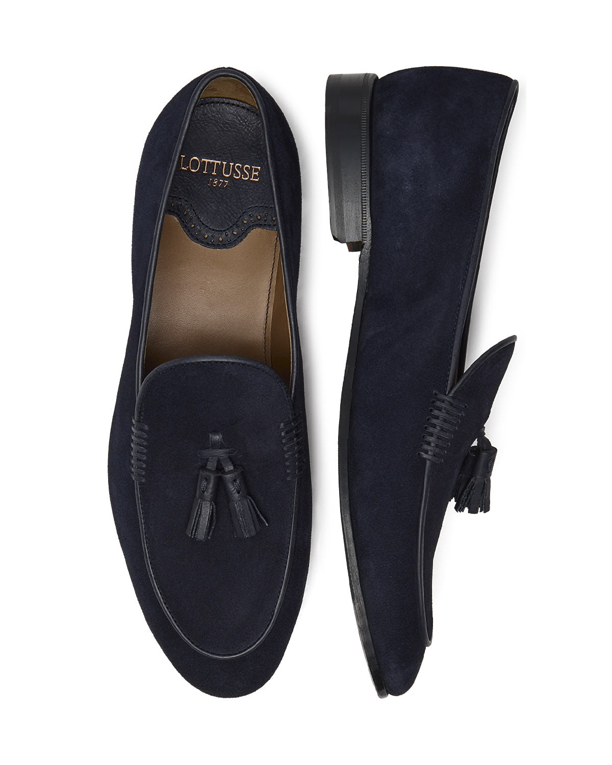 Disse klassiske loafers for menn fra Lottusse skaper den perfekte balansen mellom komfort og stil. De er laget av myk kalve semsket skinn av beste kvalitet og kommer i en allsidig nyanse av blå. Formen er tradisjonell, og de kan enkelt tas av og på for maksimal bekvemmelighet.