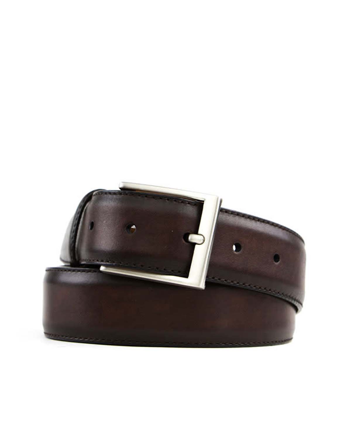 Dette Magnanni-beltet i brunt skinn er et must-have i garderoben din. Beltet er flott polert og den robuste spennen gir beltet et tøft, men elegant preg.