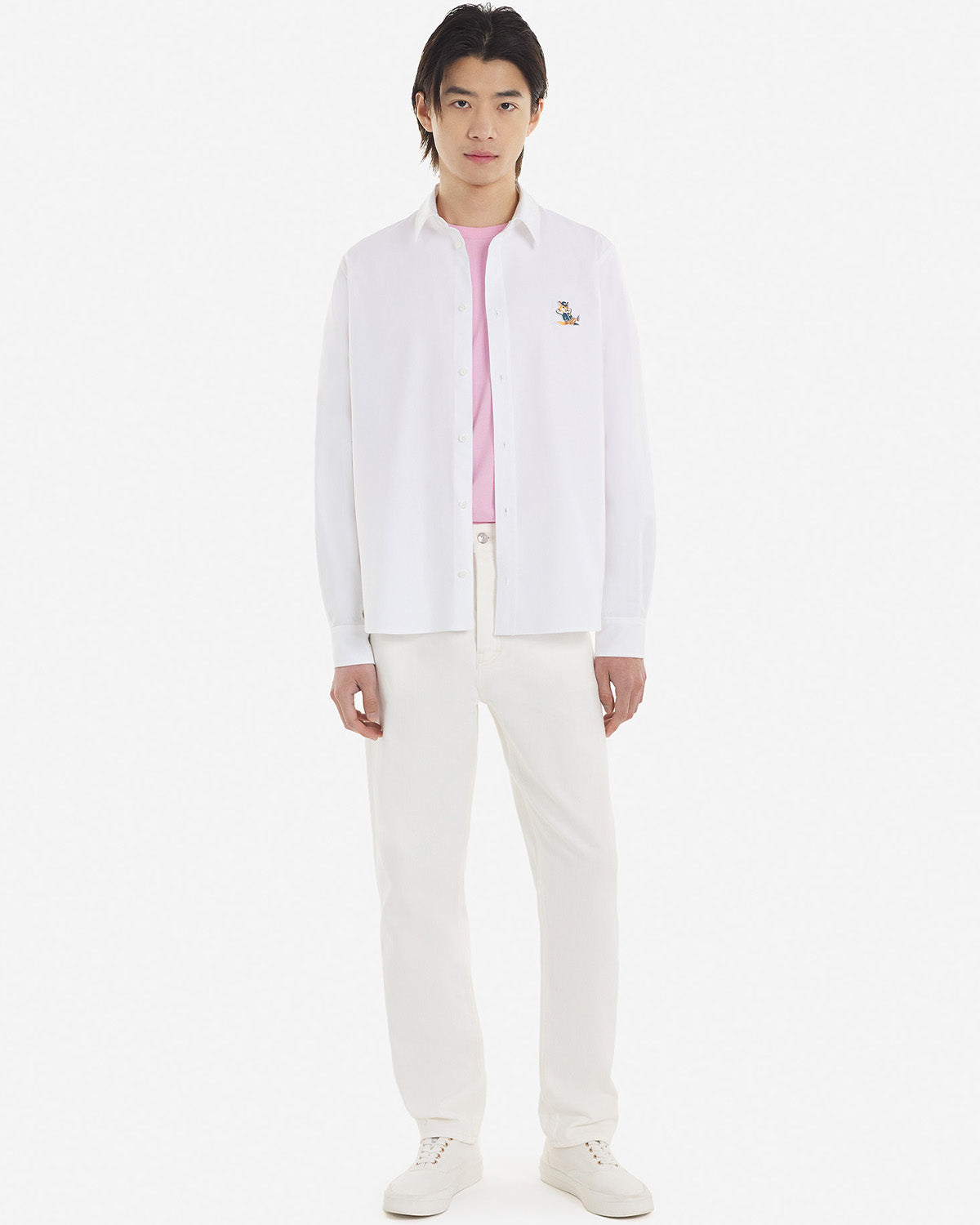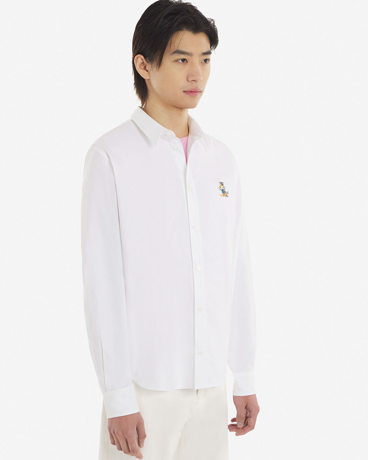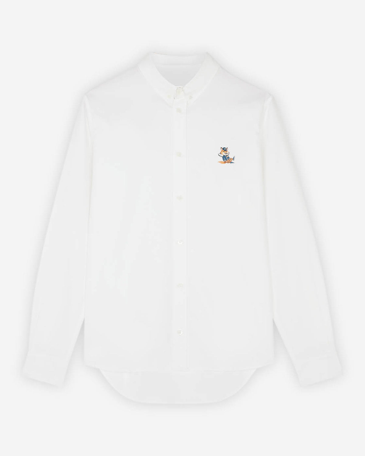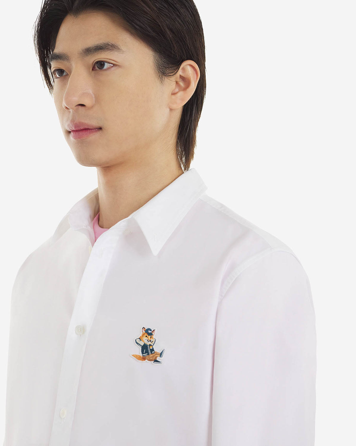 Hvit bomullsskjorte fra Maison Kitsuné. Dressed Fox Patch R har en avslappet snitt med Dressed Fox-lapp brodert på brystet.
