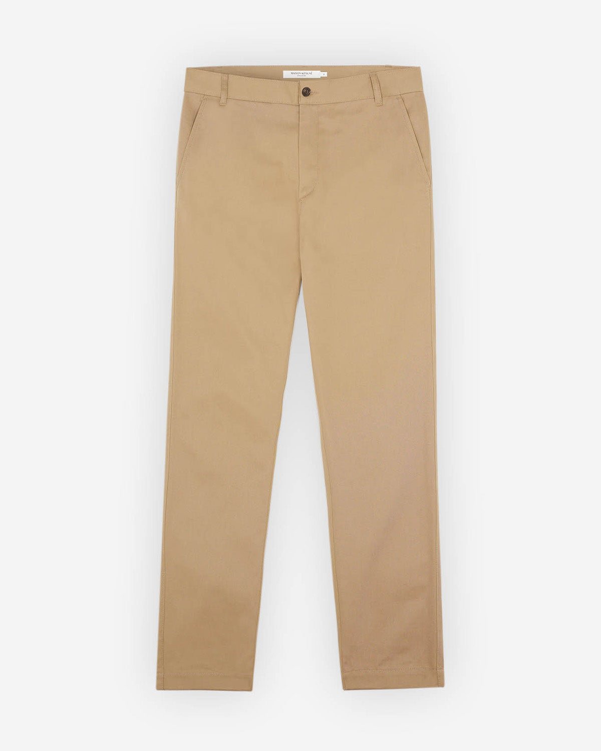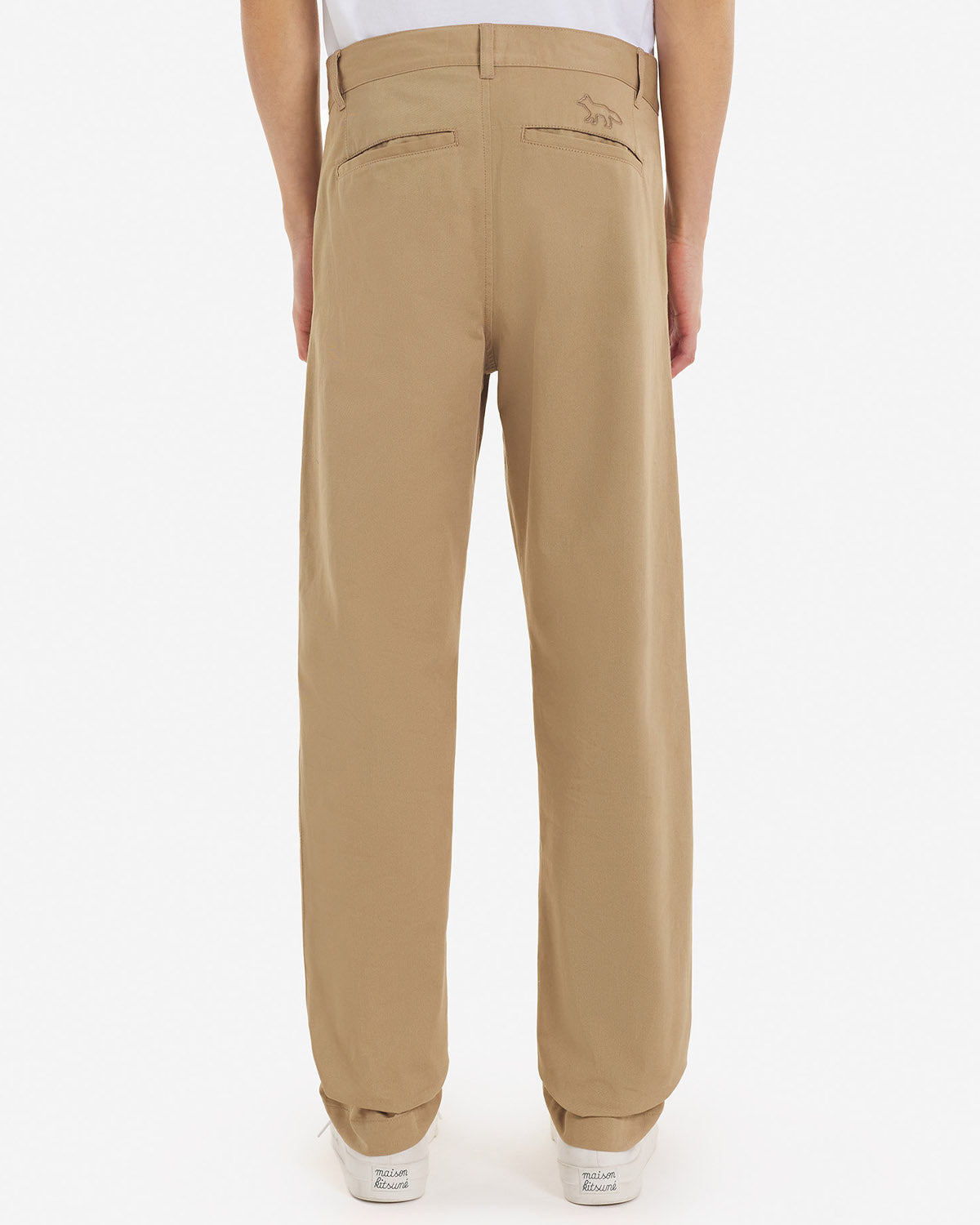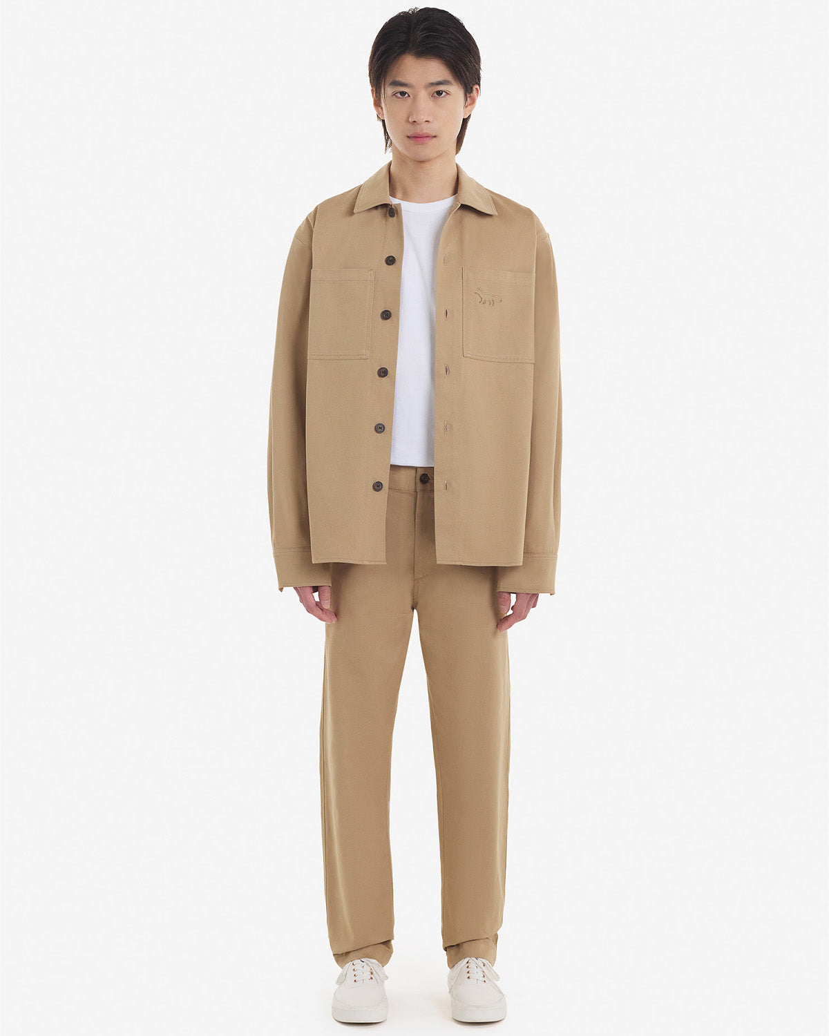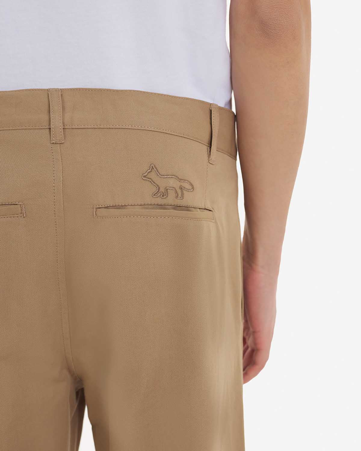Beige bukse fra Maison Kitsuné. Tapered Pants har beltehemper i linningen, to slash frontlommer og to paspolerte baklommer med Profile Fox brodert over baklommen.