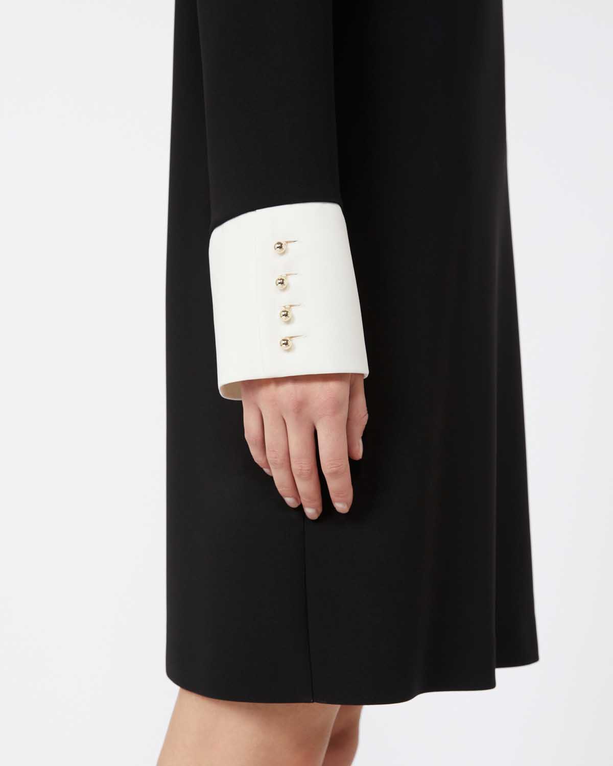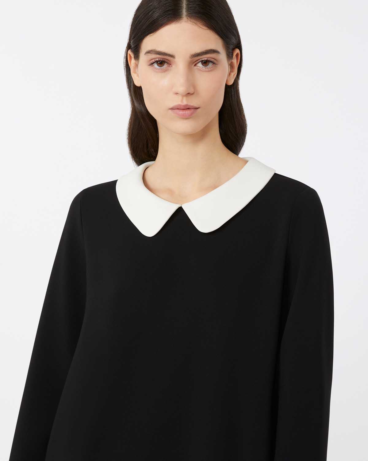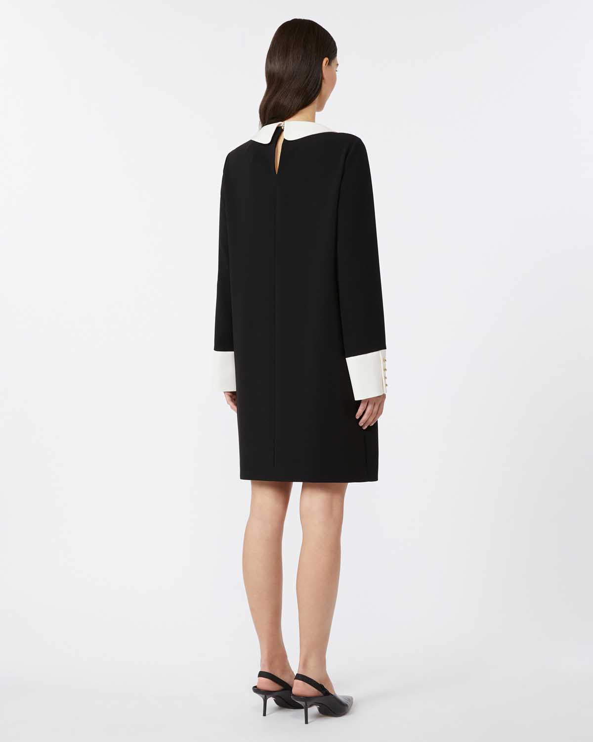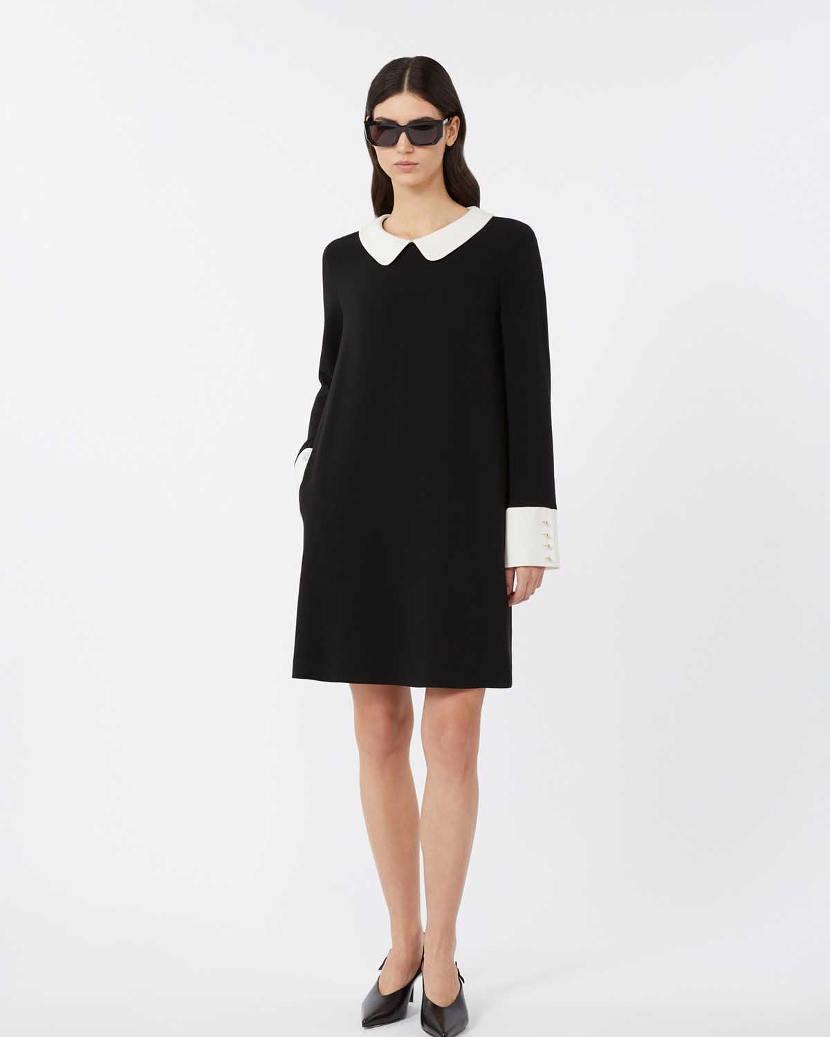 Kort kjole med rett passform fra Max Mara i klassisk svart med hvite kontrastfargedetaljer.