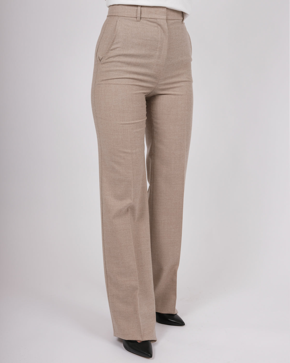 Disse buksene er laget i en presis og ren, skreddersydd maskulin stil. Ullflanellstoffet gir struktur, mens den rette bensilhuetten sikrer en klassisk og allsidig passform.