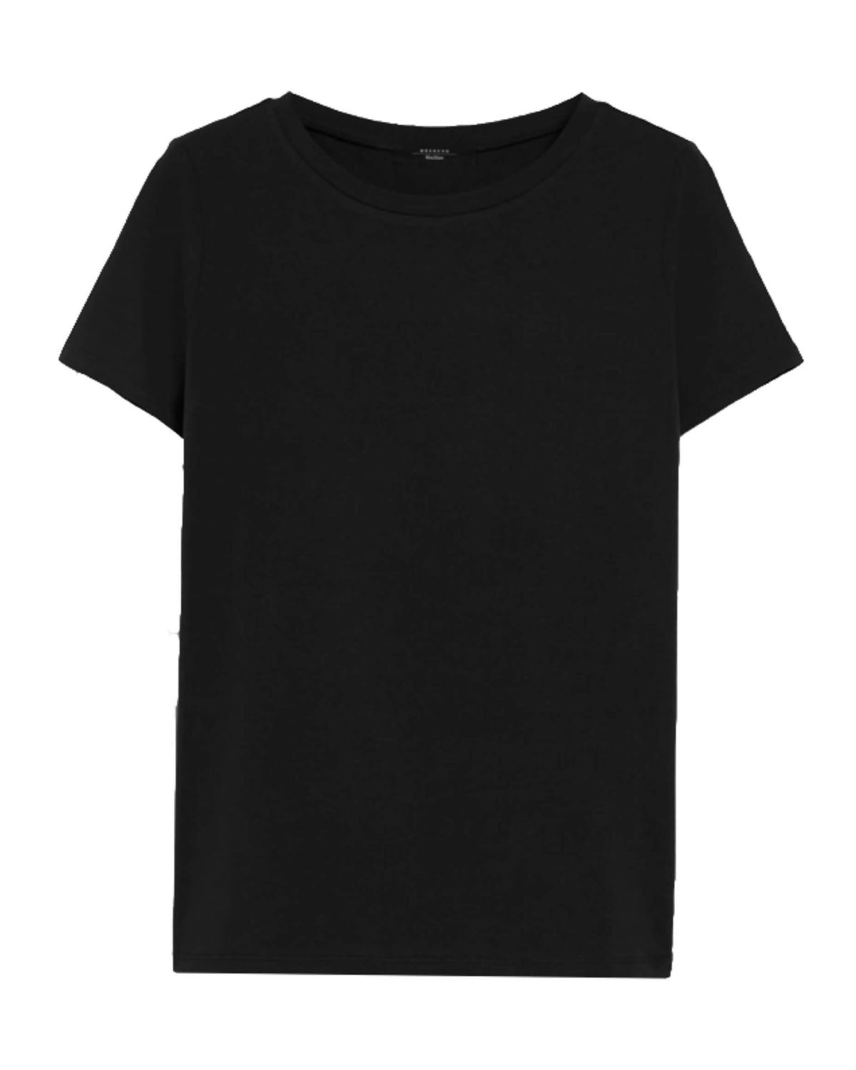 Sort t-skjorte fra Max Mara. Multif har rund hals, rett passform, korte ermer og trykt logodetalj på ryggen.