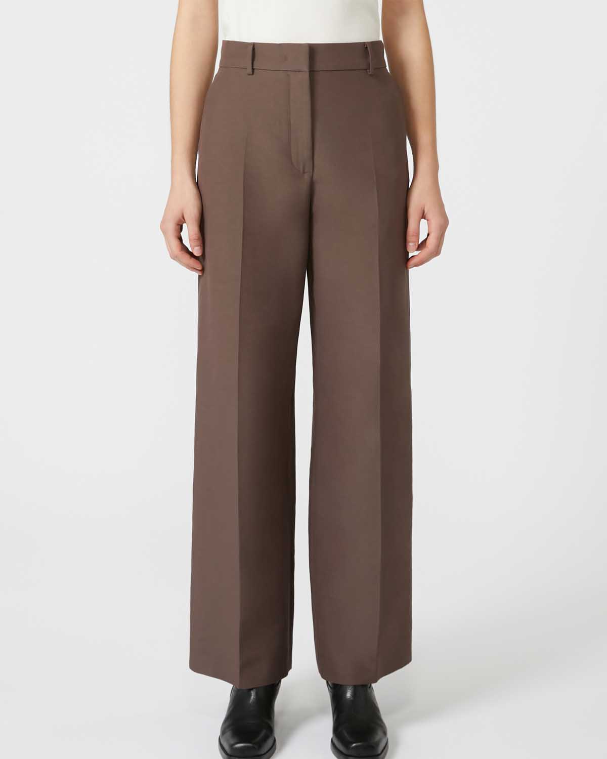 Brune bukser med et karakteristisk palazzo-snitt fra Max Mara.