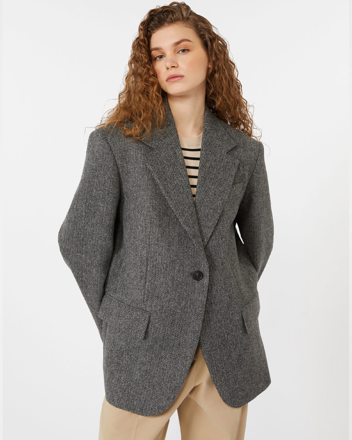 Enkeltspent blazer inspirert av herreklær med et karakteristisk oversized volum.