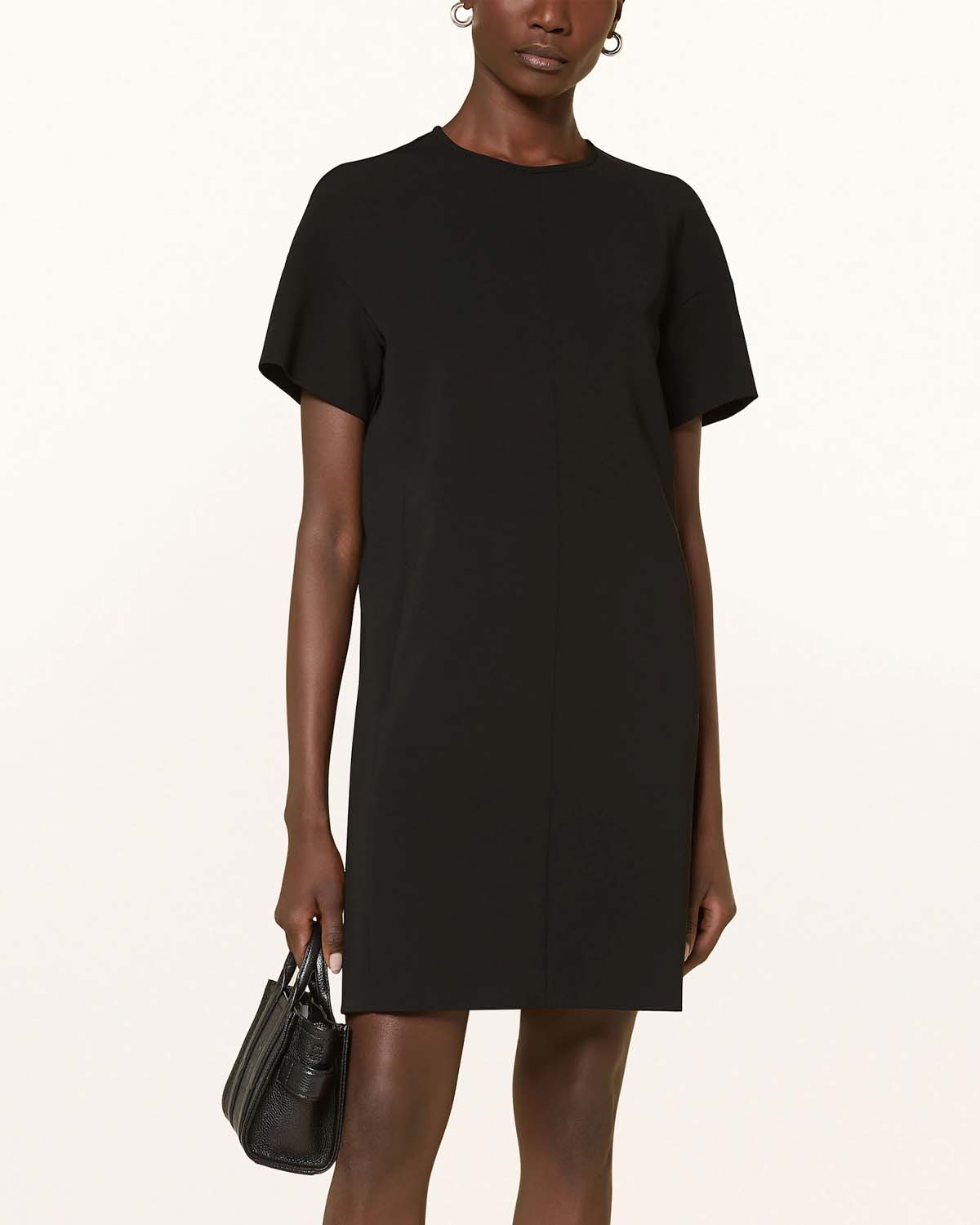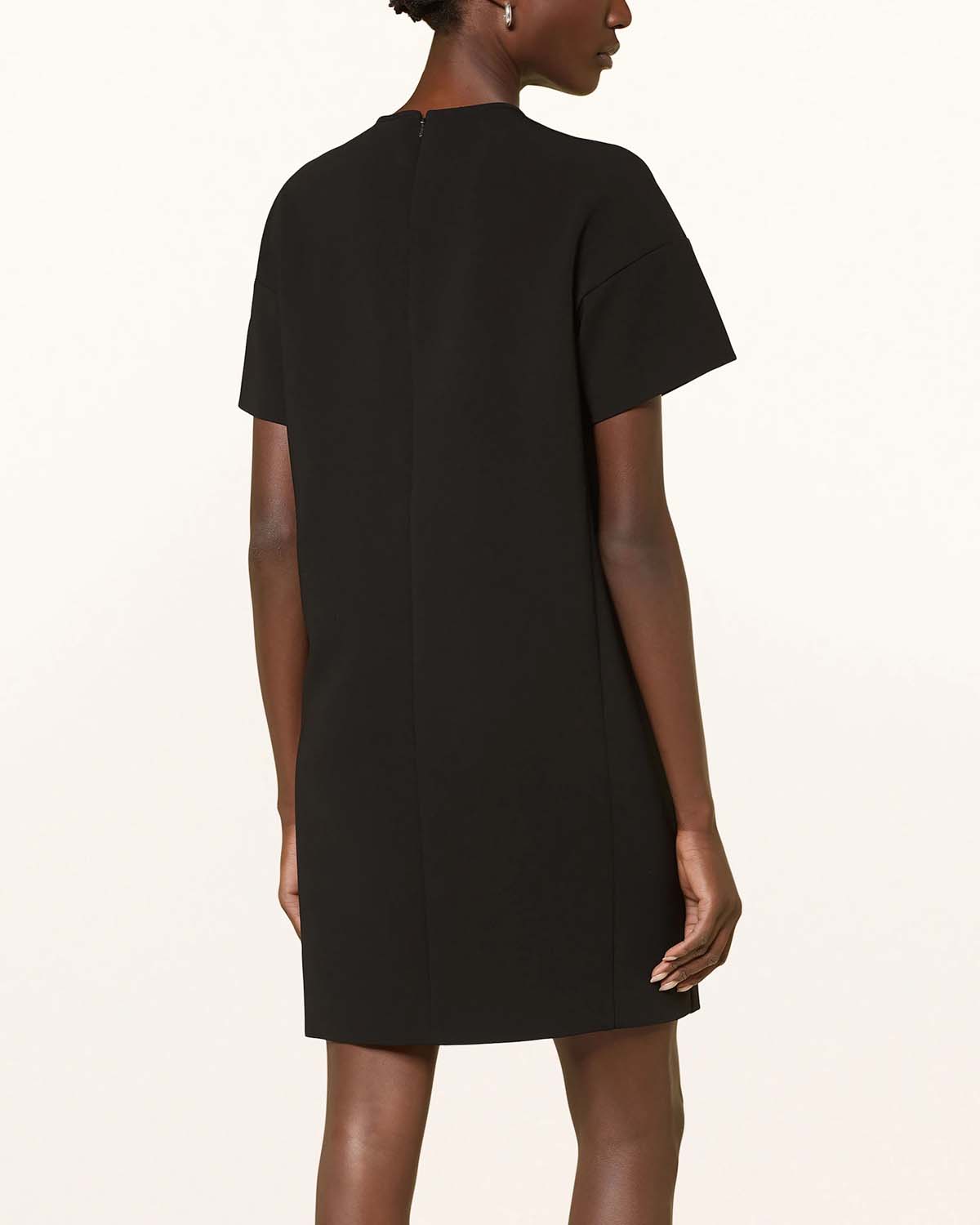 Kort t-skjortekjole med rund hals og korte ermer. Utsmykket med sidelommer i sømmen.