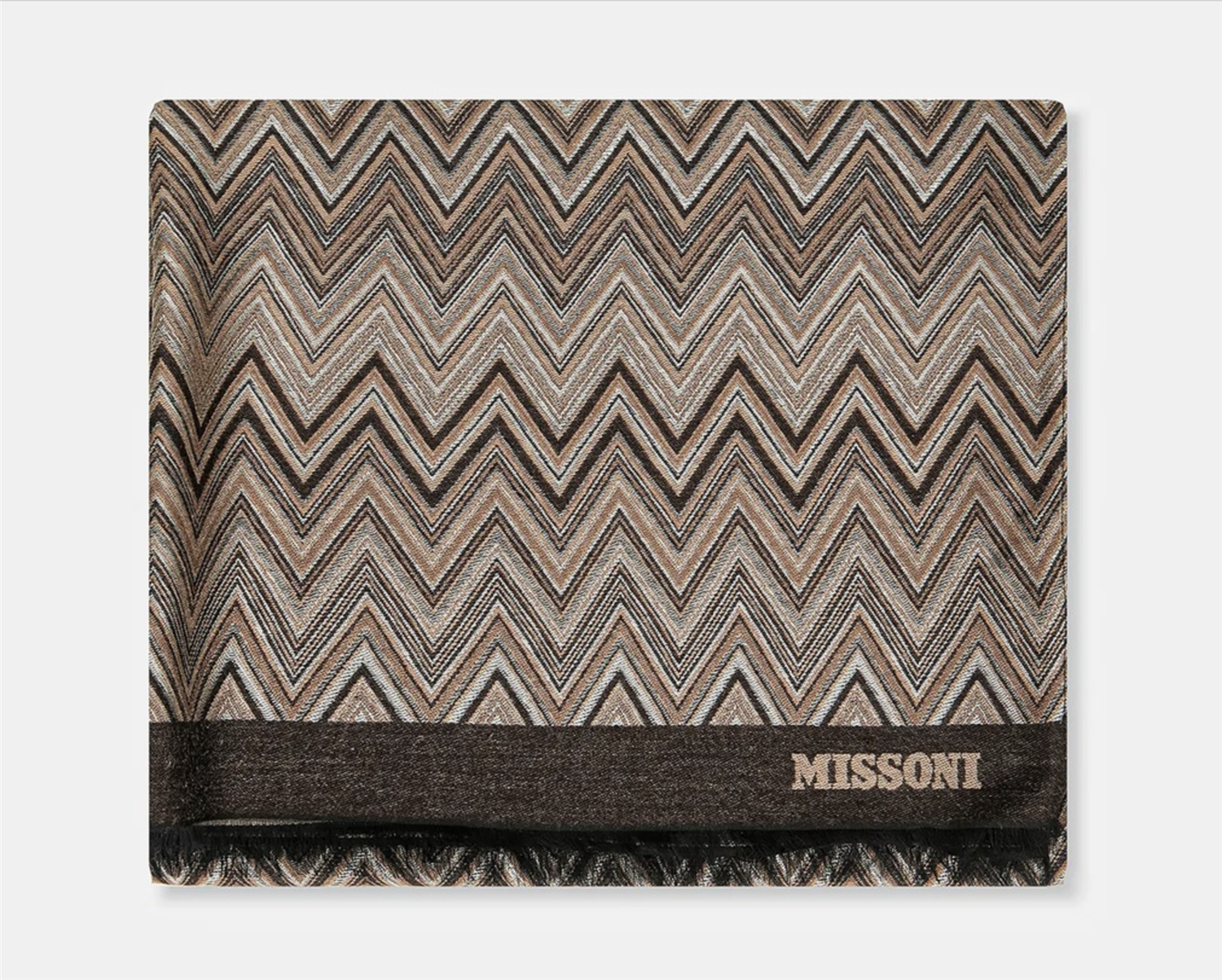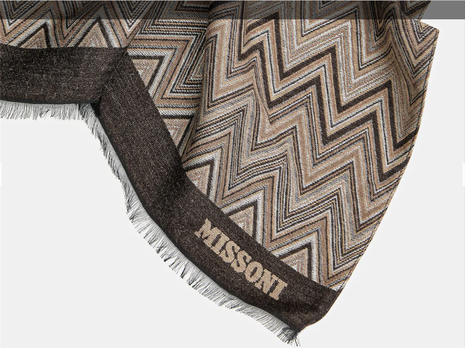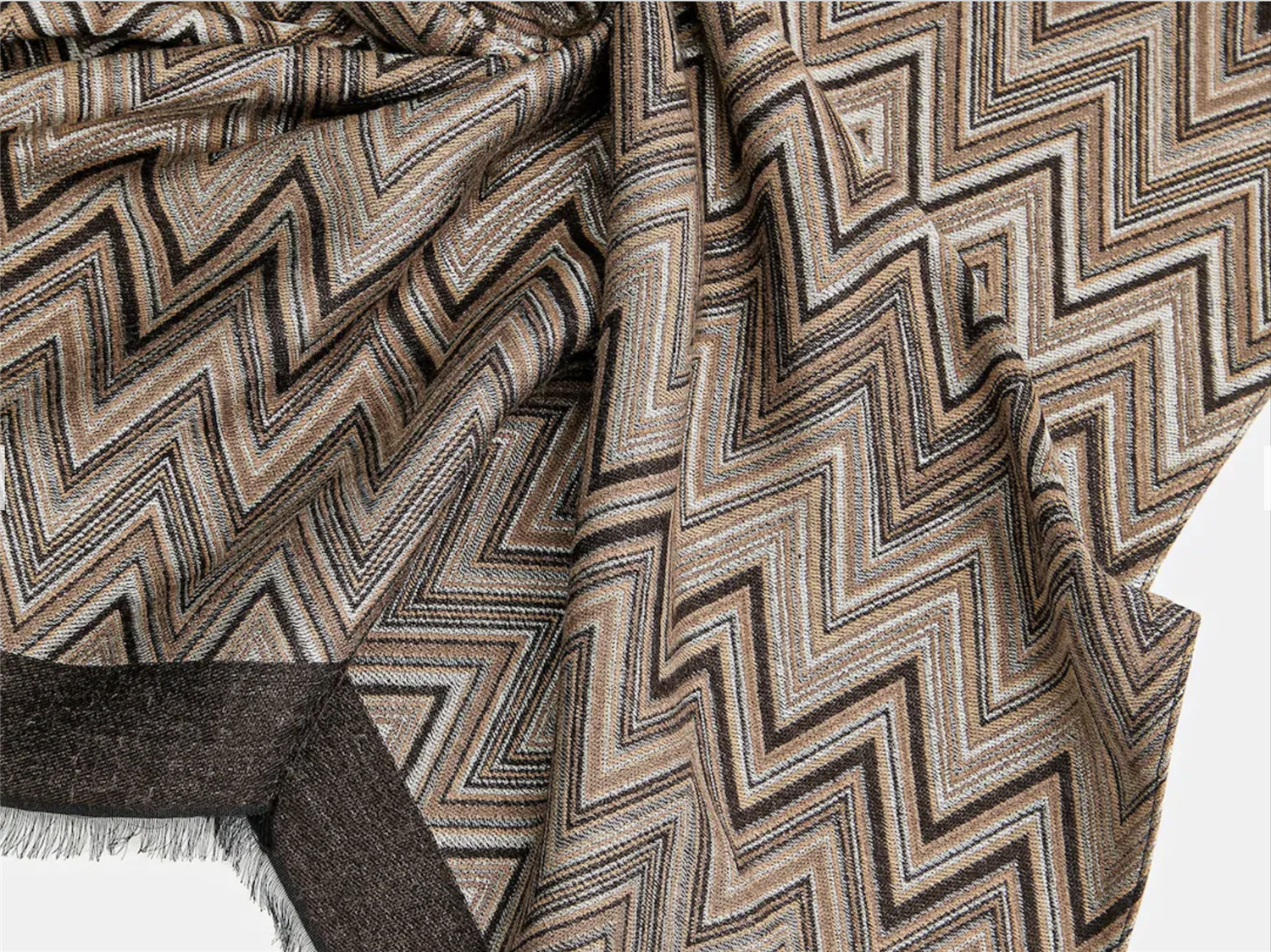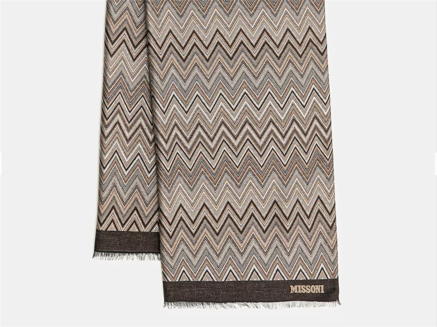 Skjerf fra Missoni-kolleksjonen. Modellen er laget av tynt, mønstret stoff.