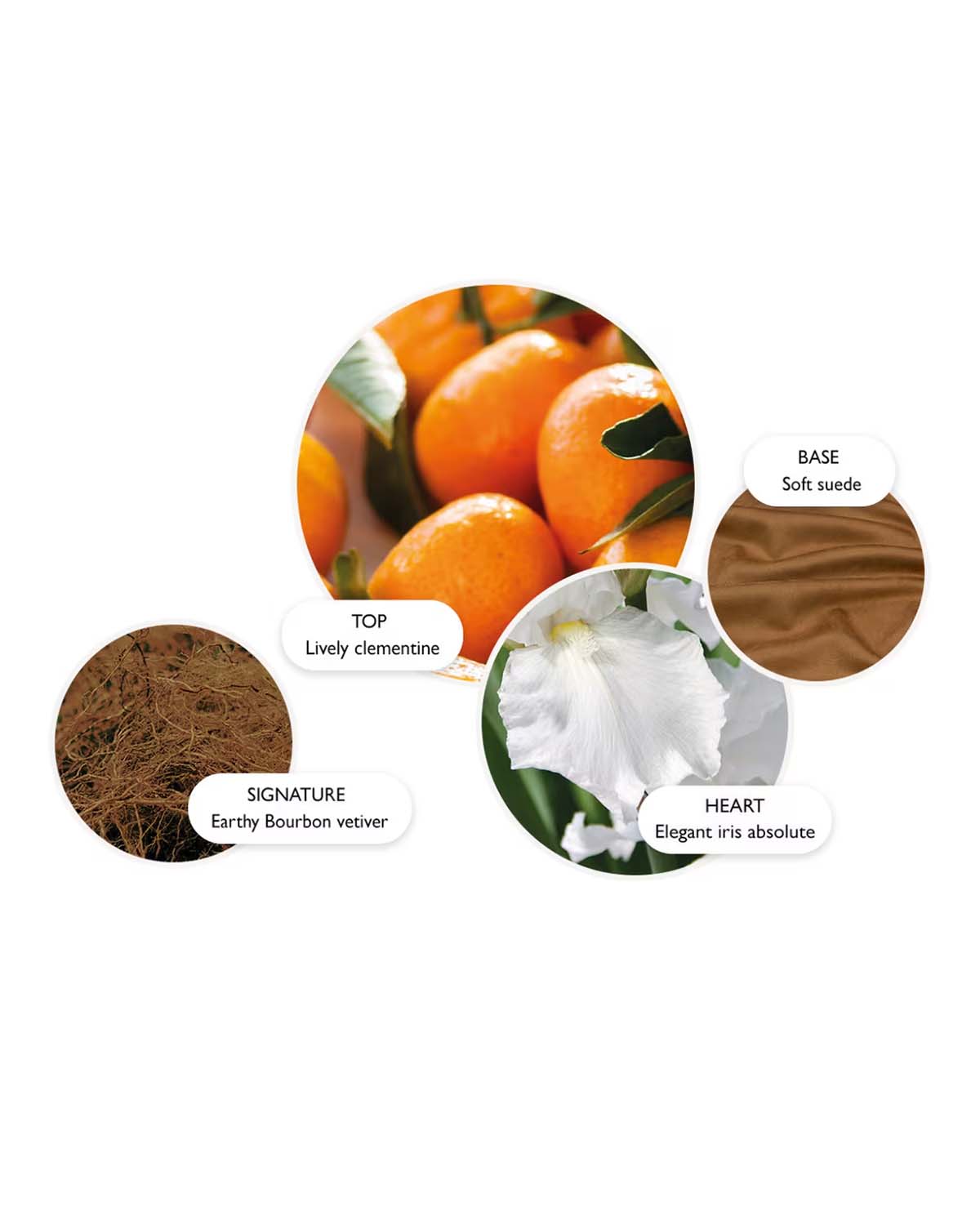 En avslappet, sommerlig eleganse; denne sitrusduften gir energi med livlige stråler av klementin og mandarin, avrundet av et fløyelsmyk hjerte av iris og en røykfylt, jordaktig signaturnote av dyrket, rik bourbon vetiver.