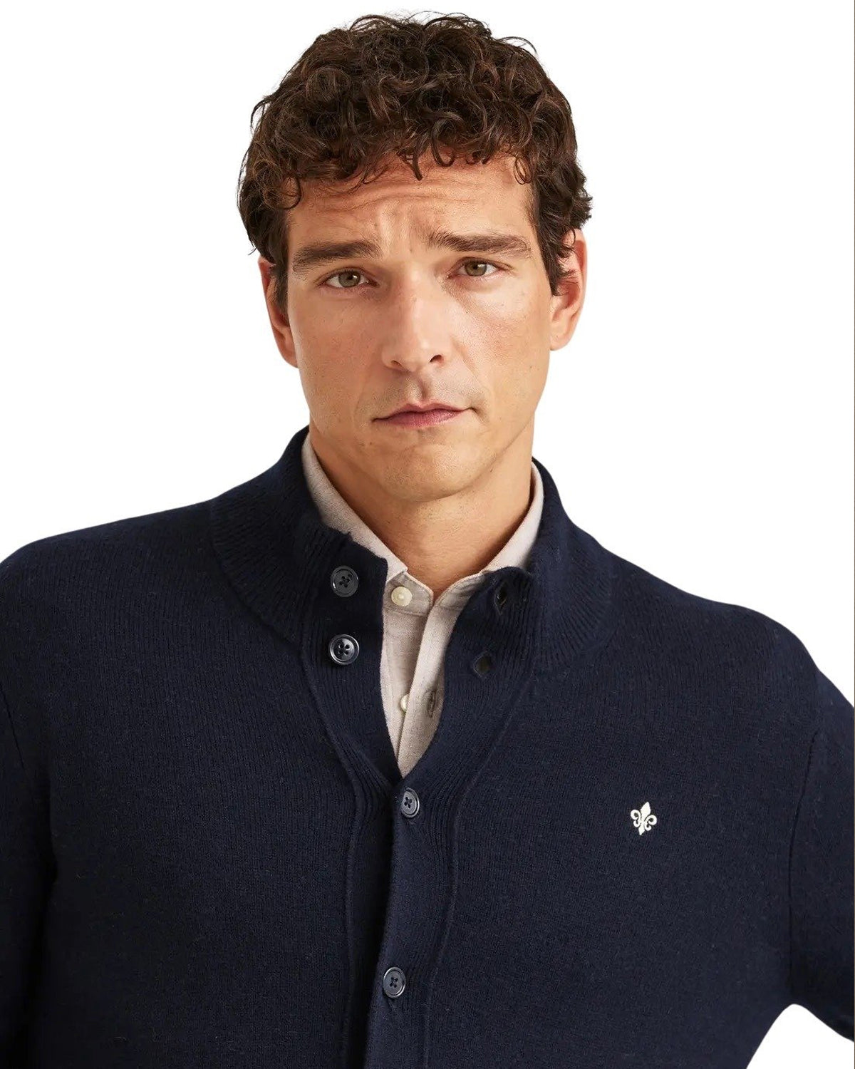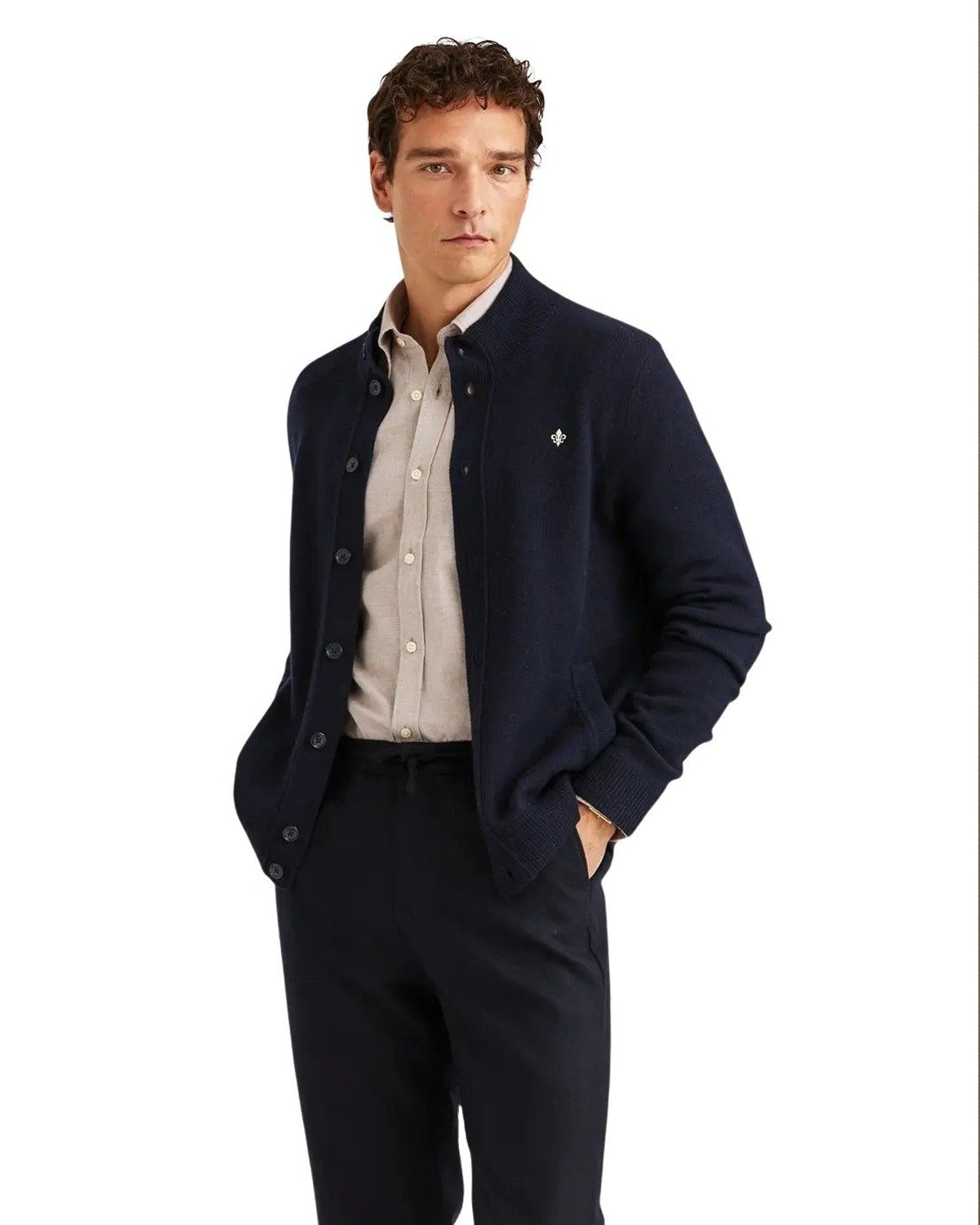 Cardigan til herre fra Morris Stockholm. Laget av børstet merinoull, en myk og lett kvalitet som gir både komfort og stil. Perfekt for lag-på-lag-antrekk og kan brukes på mange forskjellige måter. Kombiner den med dressbukser for et mer polert antrekk eller med denim for en avslappet, men sofistikert stil.
