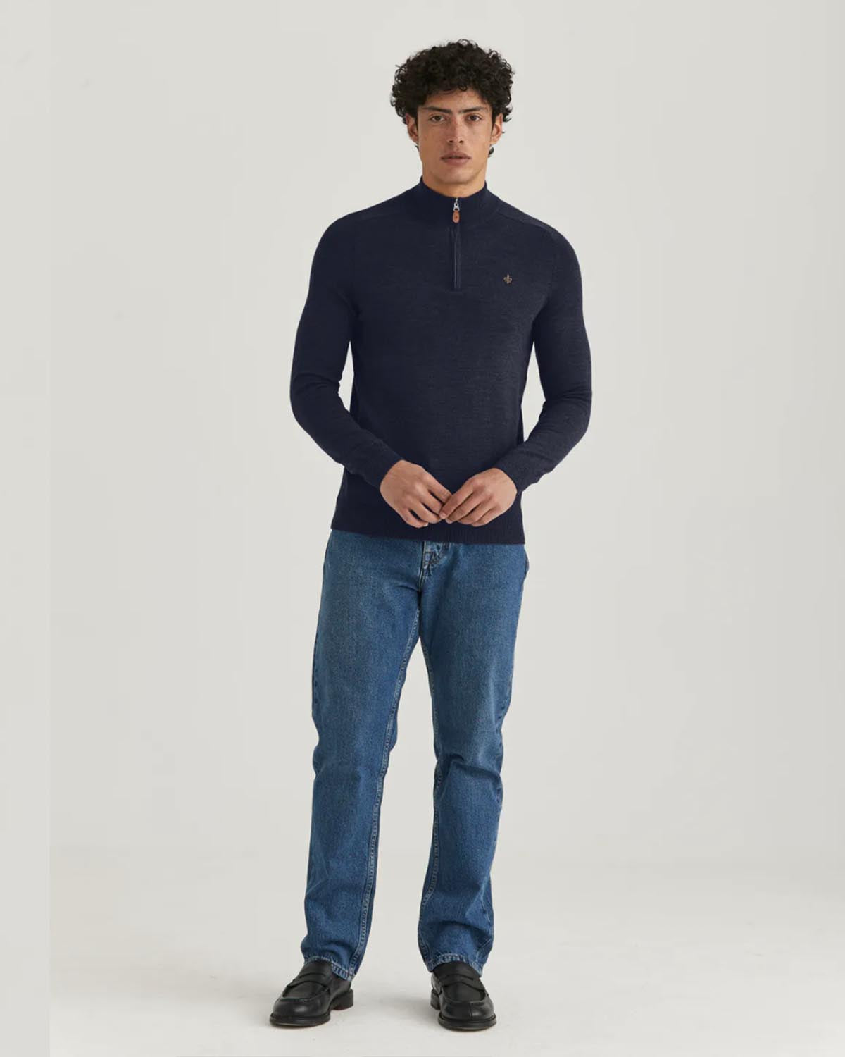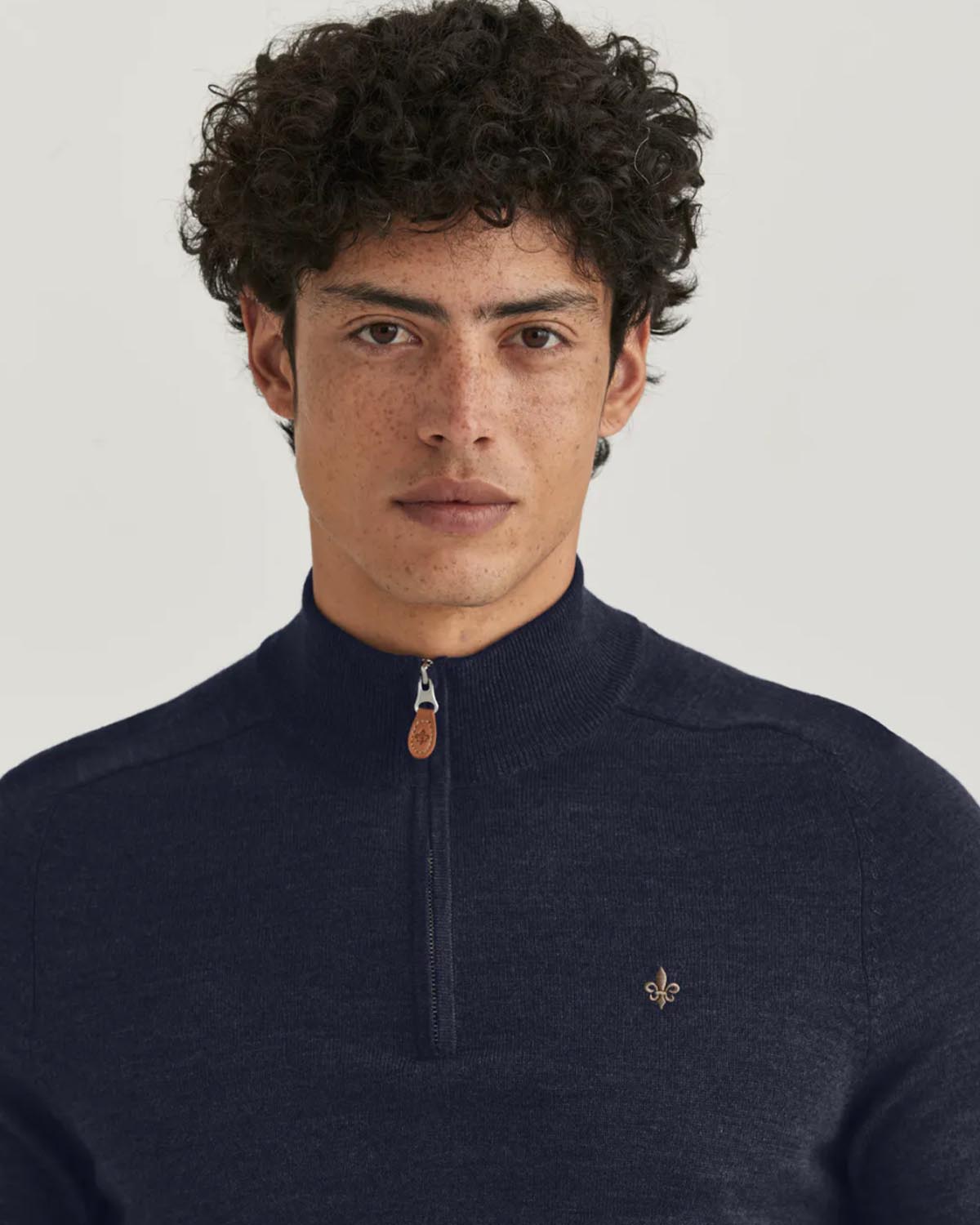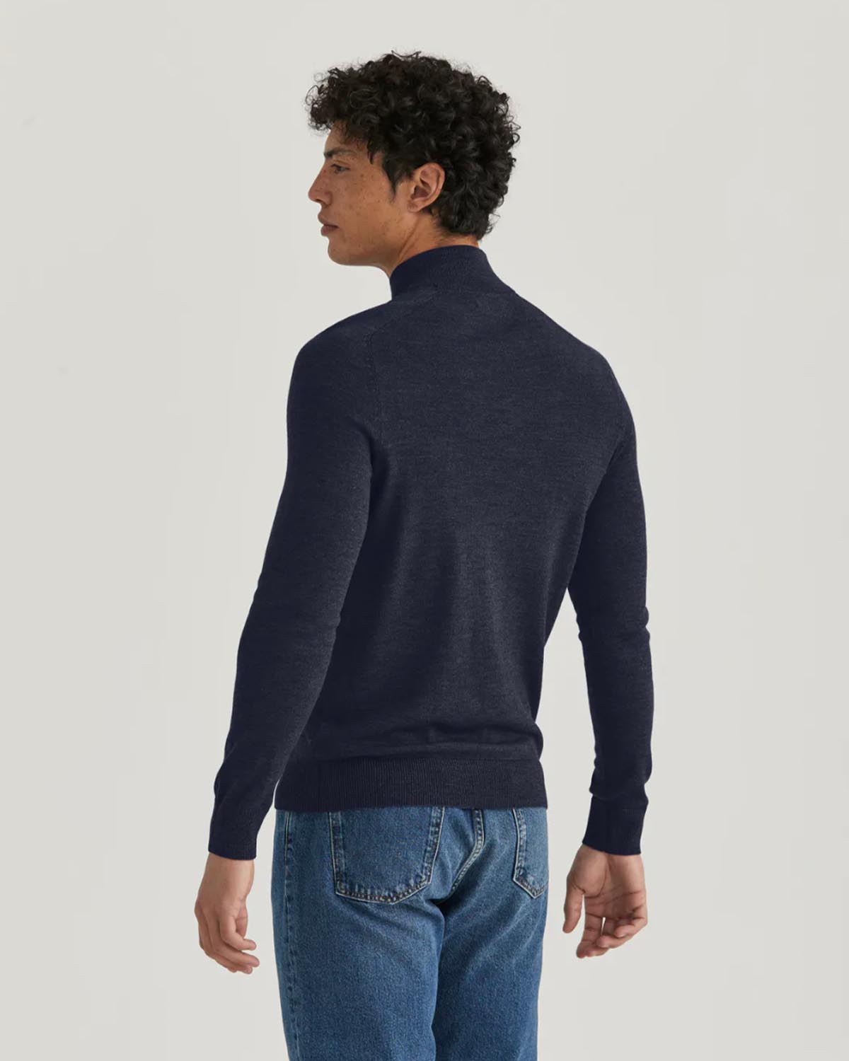 Merino John Zip er laget i myk merinoull fra Biellas fineste garnleverandør. Det er en ekte garderobestift; en moderne måte å se elegant, men likevel sporty ut på. Den fungerer perfekt som et lag over en skjorte, under en blazer, eller som den er. Merino er et av favorittmaterialene våre, da dets unike kvaliteter gjør det til en god investering hele året.