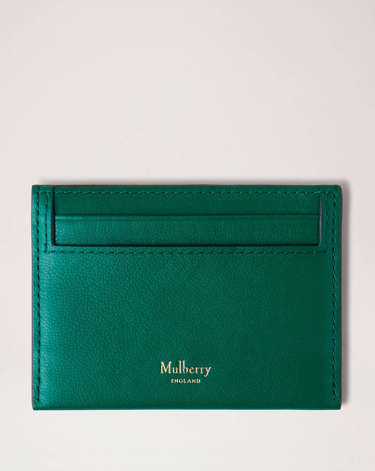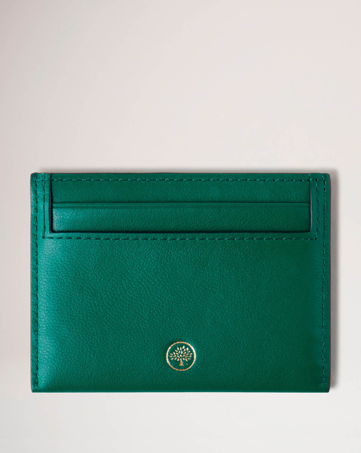 Stilren kortholder i en fresh grønnfarge fra Mulberry! Continental Credit Slip MCG i fargetonen "Malachite" er en firkantet lommebok med logodetaljer i sølv. Kortholderen har fire rom til kort samt én lomme i midten.