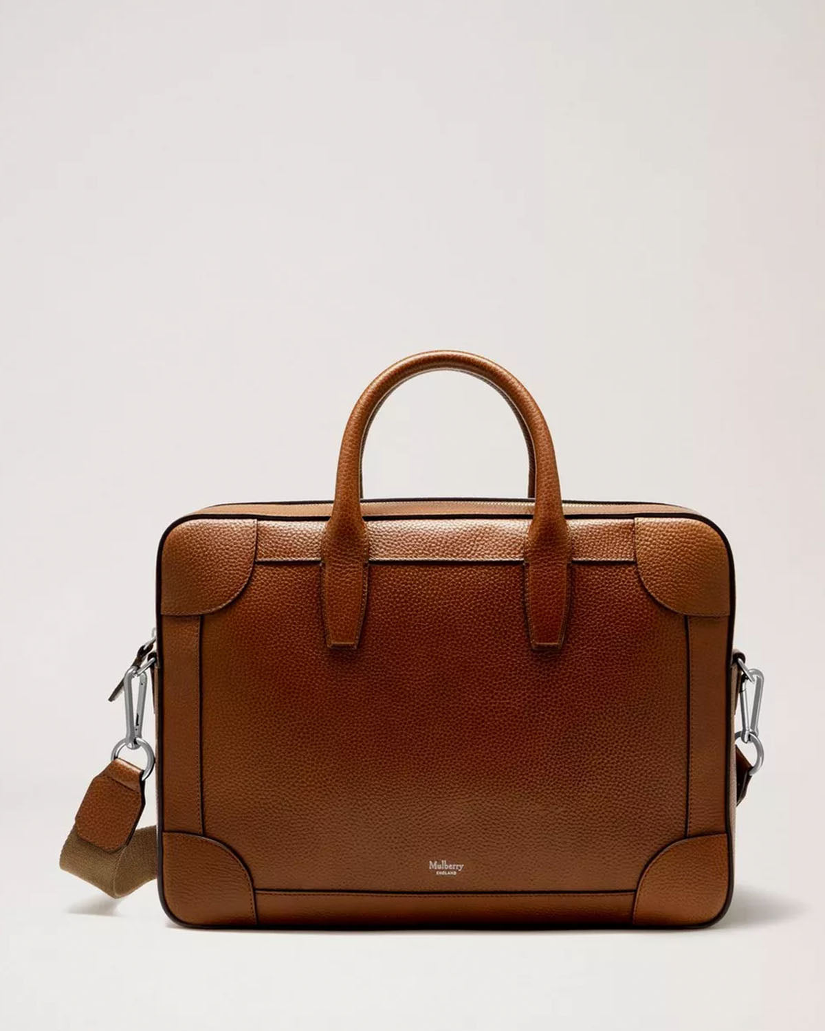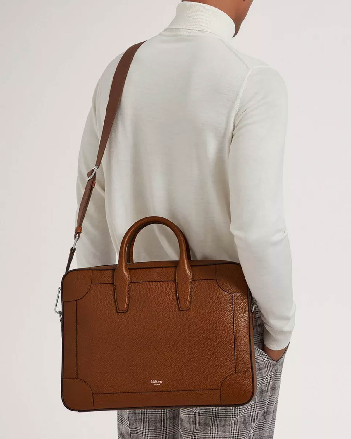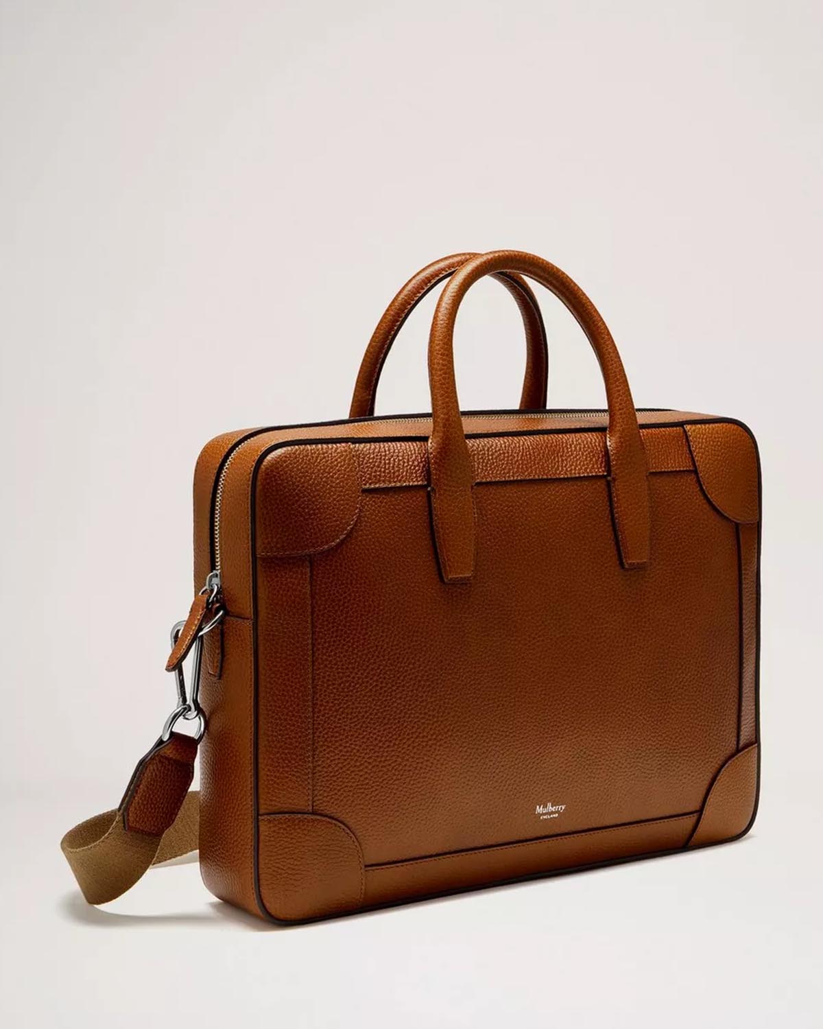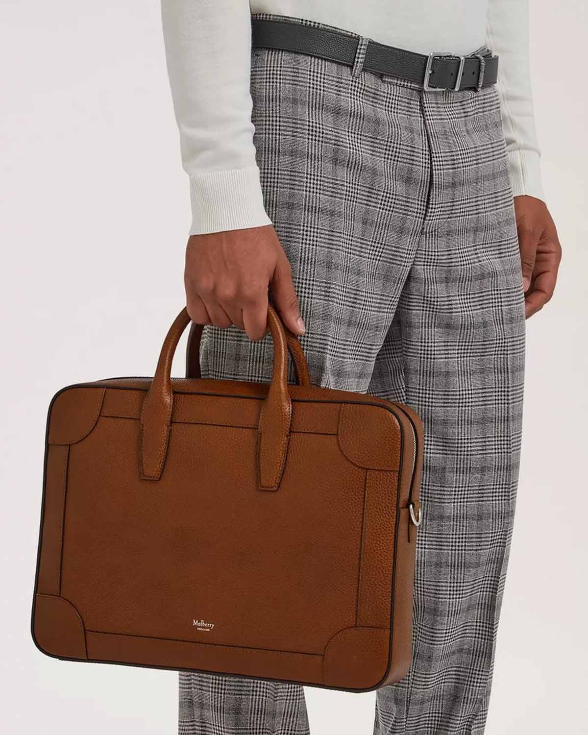 Belgrave Single Document Holder Oak Natural Grain Leather fra Mulberry er en unisex veske som kan bæres enten i hånden eller over skulderen. Vesken er perfekt som arbeidsveske og rommer det mest nødvendige. Fullføres av den kjente logoen i sølv.