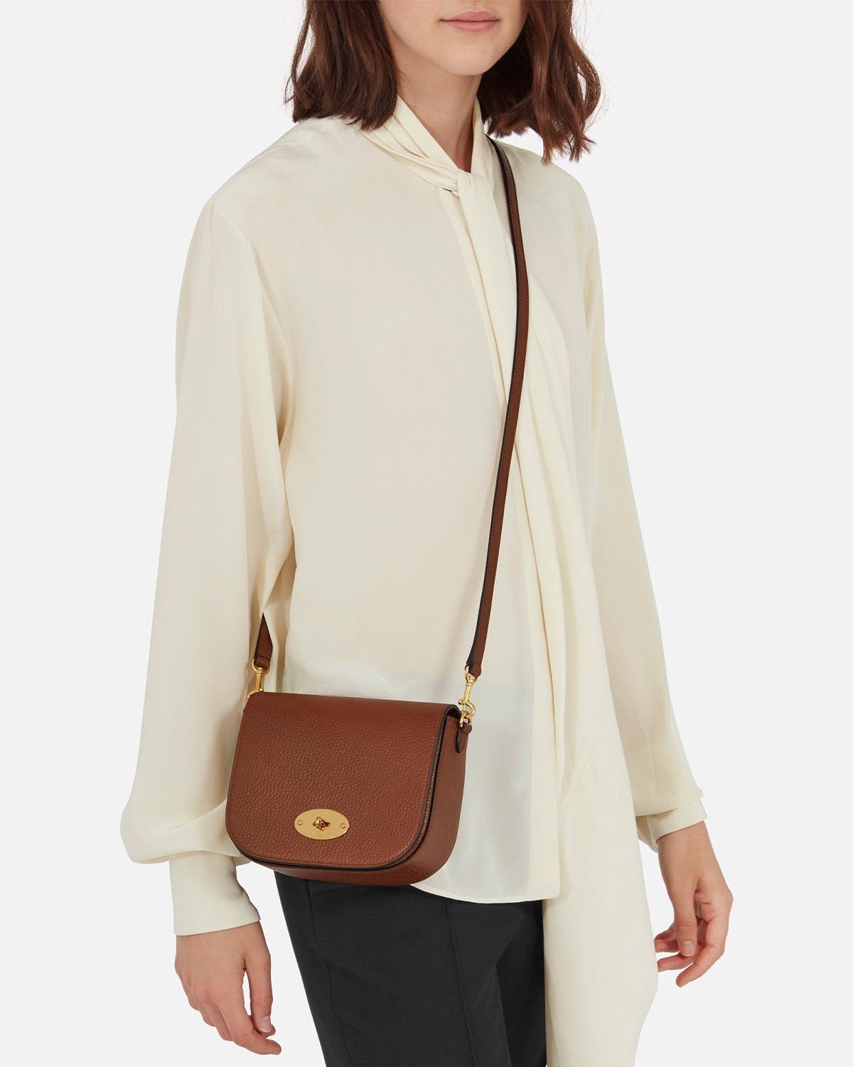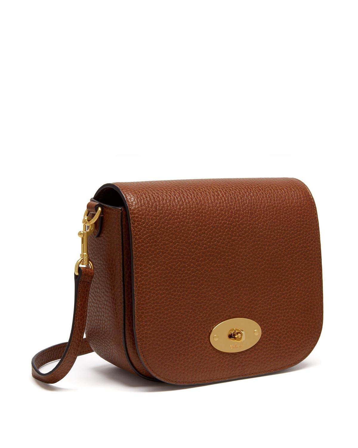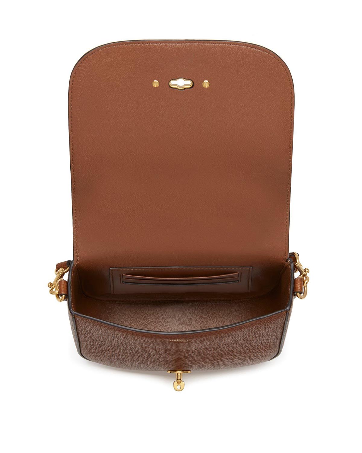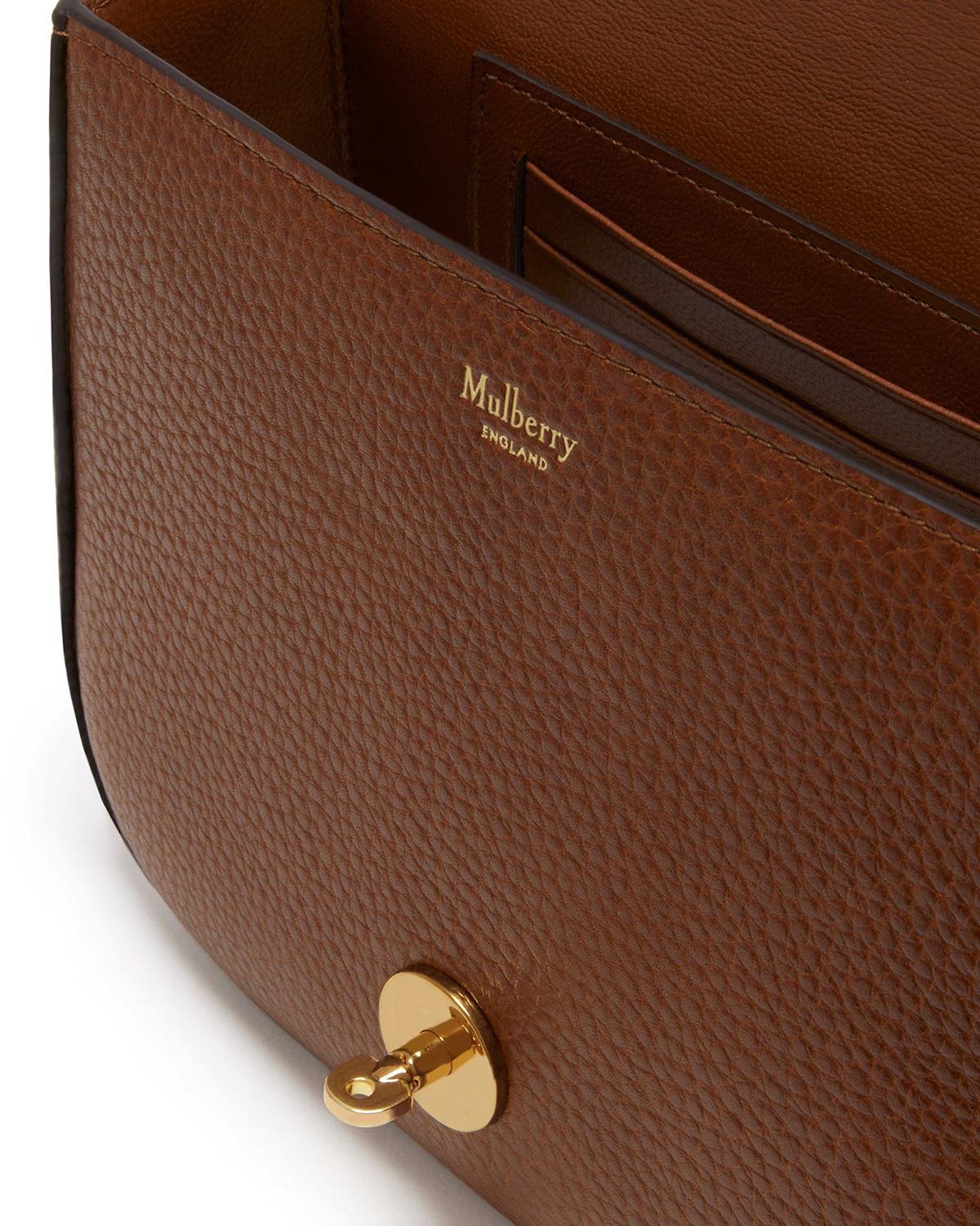 Tidløs, brun skinnveske fra Mulberry. Small Darley Satchel Oak Small Classic Grain er en klassisk, liten veske i avrundet design med justerbar skulderreim. Vesken er i en anvendelig brunfarge med gullfarget hardware, og fullføres av den ikoniske Postman's Lock.