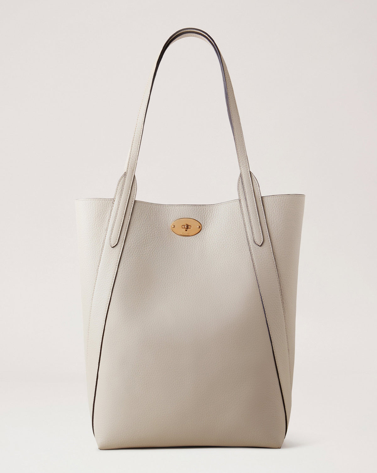 North South Bayswater Tote i chalk er den perfekte hverdagsvesken. Den rommer alle dine nødvendigheter og har en grov skinn tekstur som godt tåler bruk. Vesken har den klassiske Postman's Lock lukkingen i toppen, to skulderstropper i skinn, rikelig med innvendig plass, og er funksjonell, slitesterk og elegant.