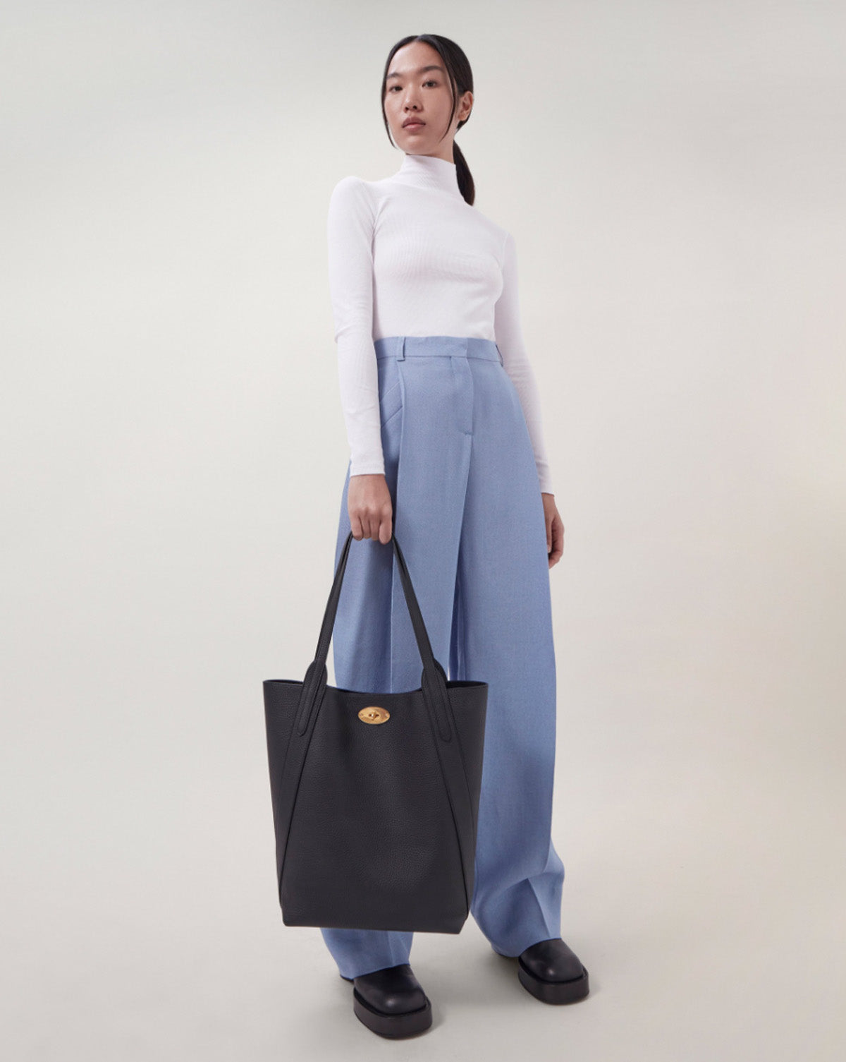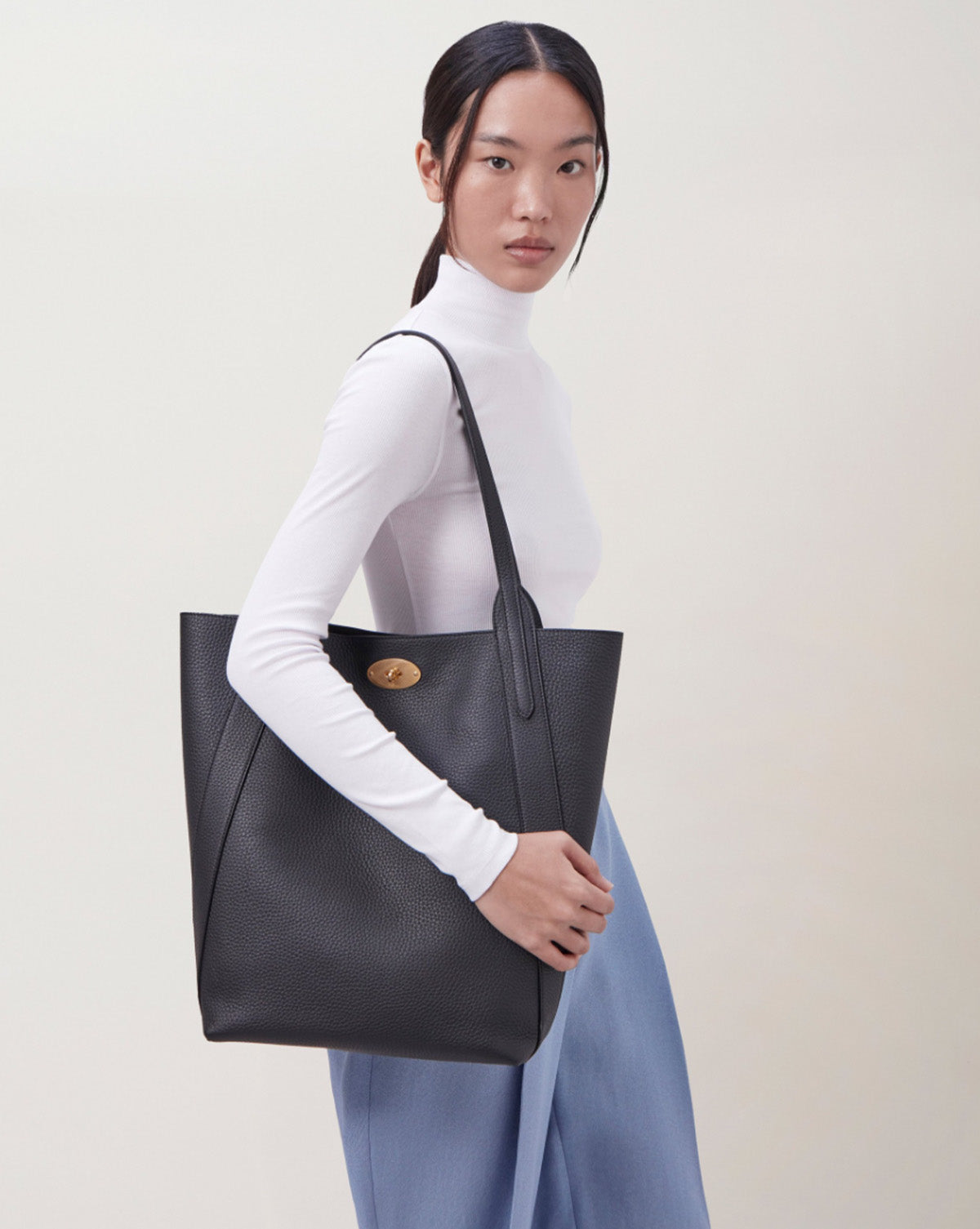 N/S Bayswater Tote Black er et nytt tilskudd til Bayswater-familien. Denne vesken har den klassiske Postman's Lock, to skulderstropper i skinn, rikelig med innvendig plass, og er funksjonell, slitesterk og elegant.