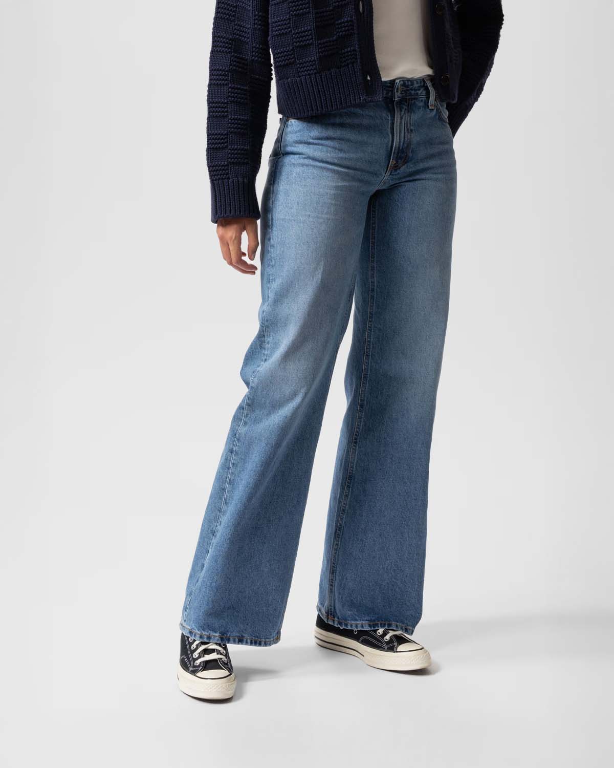 Jeans i løs passform med lavt liv og vide ben i en lyseblå vask med autentisk slitt og vasket utseende. Den tette vevde konstruksjonen gir jeansen et robust utseende og en ekte vintage denim-følelse.