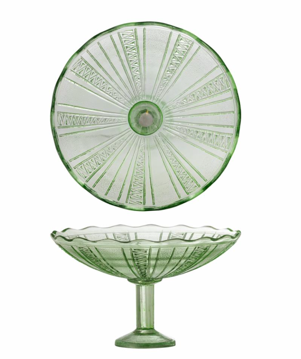Kaddy Placemat fra Bloomingville er produsert av resirkulert glass, og er med sin grønne farge et ekte blikkfang for ethvert bord. Med sitt fine, detaljerte mønster bidrar den til en følelse av klassisk eleganse. De vakkert utformede kantene og den knallgrønne fargen fanger lyset og skaper en livlig atmosfære, uansett om den brukes til frukt, som en delikat serveringsskål, eller som et dekorativt element i hjemmet. Ved å kombinere tradisjonelt håndverk med en moderne vri, er dette settet et statement som vil tiltrekke seg beundrende blikk år etter år.