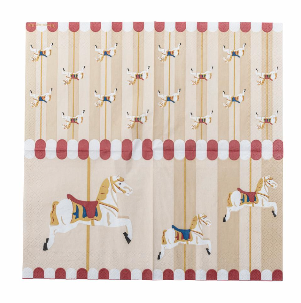 Bloomingville kommer i en pakke med 20 vakre papirservietter, dekorert med forskjellige karusellmotiver. Disse serviettene setter et lekent og nostalgisk preg på julebordet eller andre festlige anledninger og skaper en koselig atmosfære.