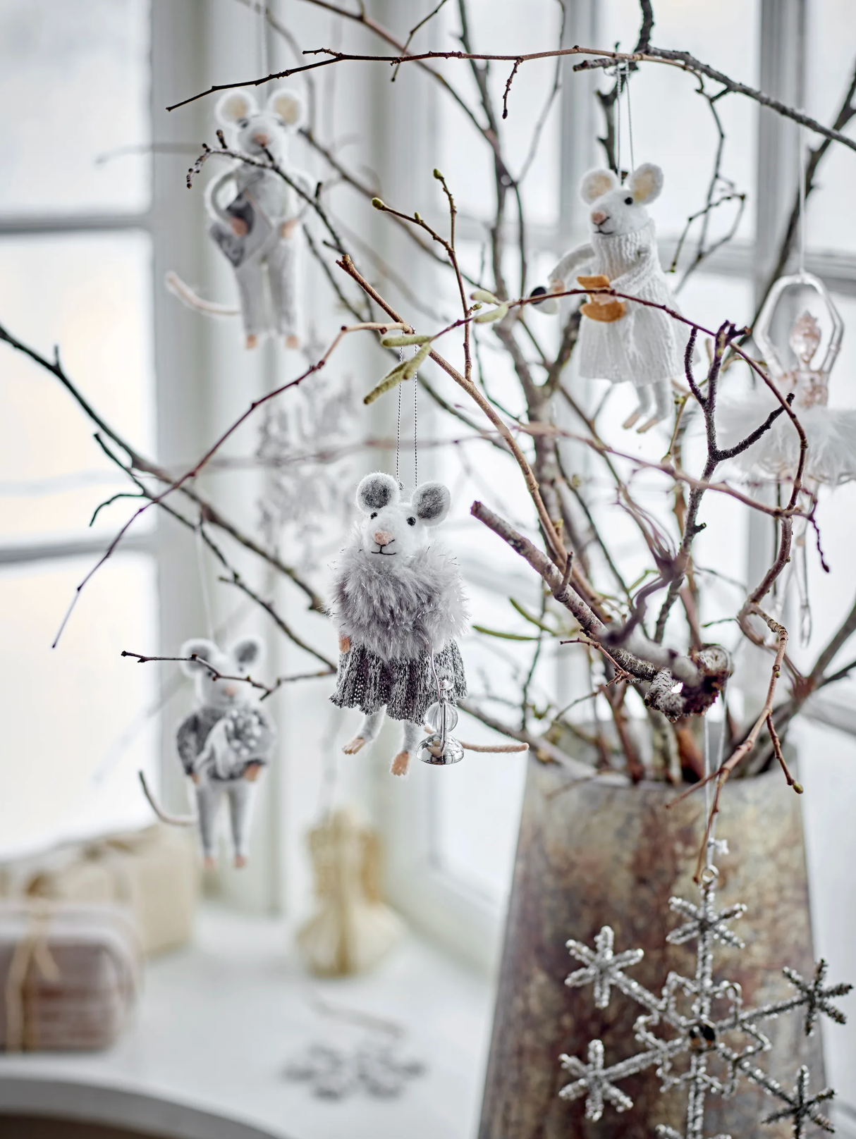 Peo juleanheng mus fra Bloomingville er laget i ull og er et sjarmerende tillegg til julepynten. De små musene er kledd i sine fineste antrekk, sprer glede og sjarm i hjemmet. Plasser dem på grener, dørhåndtak eller som en ekstra detalj på julegaver. Kommer som en og en, finnes både som dame og mann.