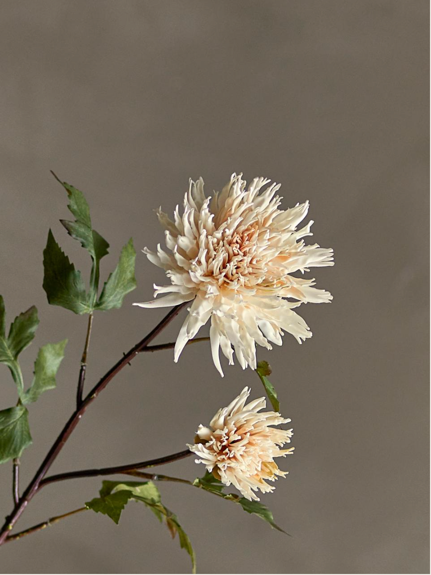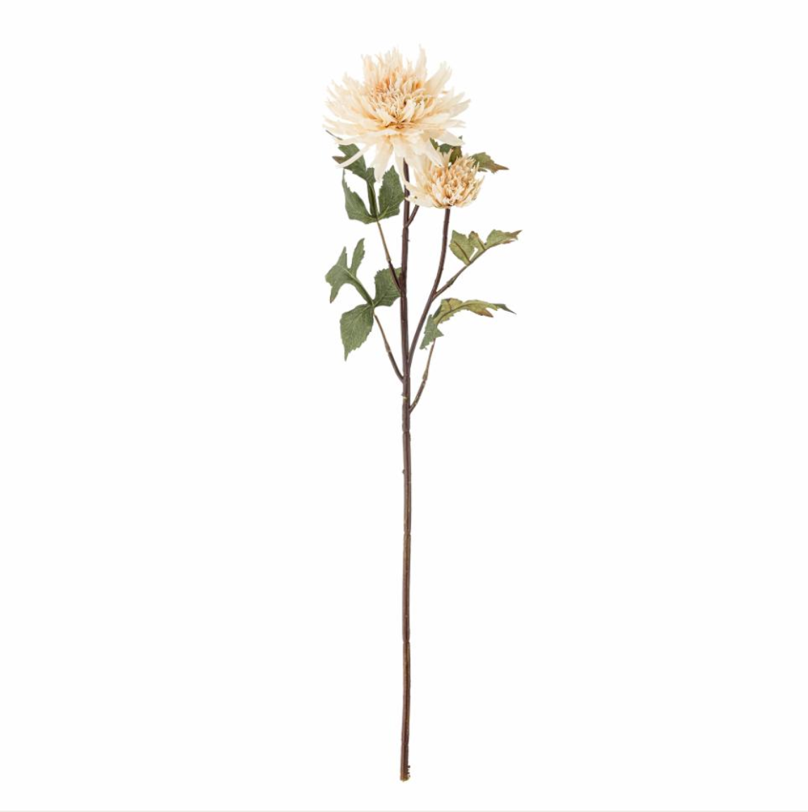Chrysantemum Kunstig Stilk fra Bloomingville har smukke blomsterhoveder i cremet hvid og detaljerede grønne blade, der giver en følelse af friskhed og livlighed. Denne kunstige blomst kan bruges alene eller kombineres med andre kunstige blomster i en buket, som forbliver smuk uden pasning. Før brug kan du med fordel forme stilken, for at frembringe dens naturlige udseende og tilpasse den til din personlige indretning.
