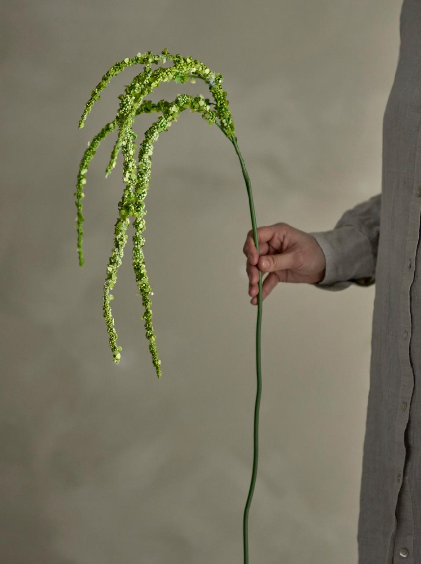 Foxtail Artificial stilk fra Bloomingville skaper en følelse av bevegelse og finesse med sine kaskader av små, grønne blomster. De fine detaljene til denne stilken gjør den perfekt som et skånsomt tillegg til enhver bukett eller som et frittstående dekorativt element. Før bruk kan du med fordel forme stilken for å få frem dens naturlige utseende og tilpasse den til din personlige innredning.