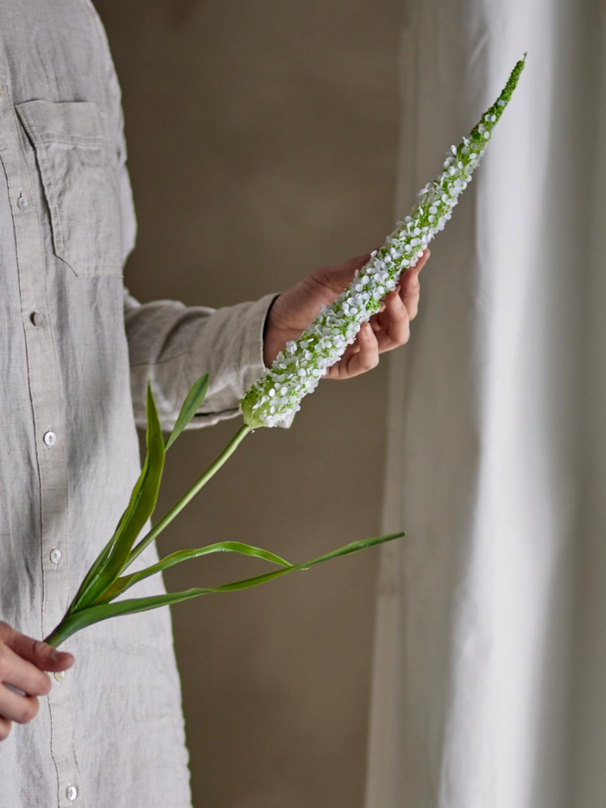 Foxtail Artificial stilk fra Bloomingville er et søtt og atmosfærisk tillegg til hjemmeinnredningen din. Etterligner den naturlige skjønnheten til ekte revehale, og gir en lett og luftig dimensjon til enhver bukett, uten behov for vann eller pleie. Før bruk kan du med fordel forme stilken for å få frem dens naturlige utseende og tilpasse den til din personlige innredning.