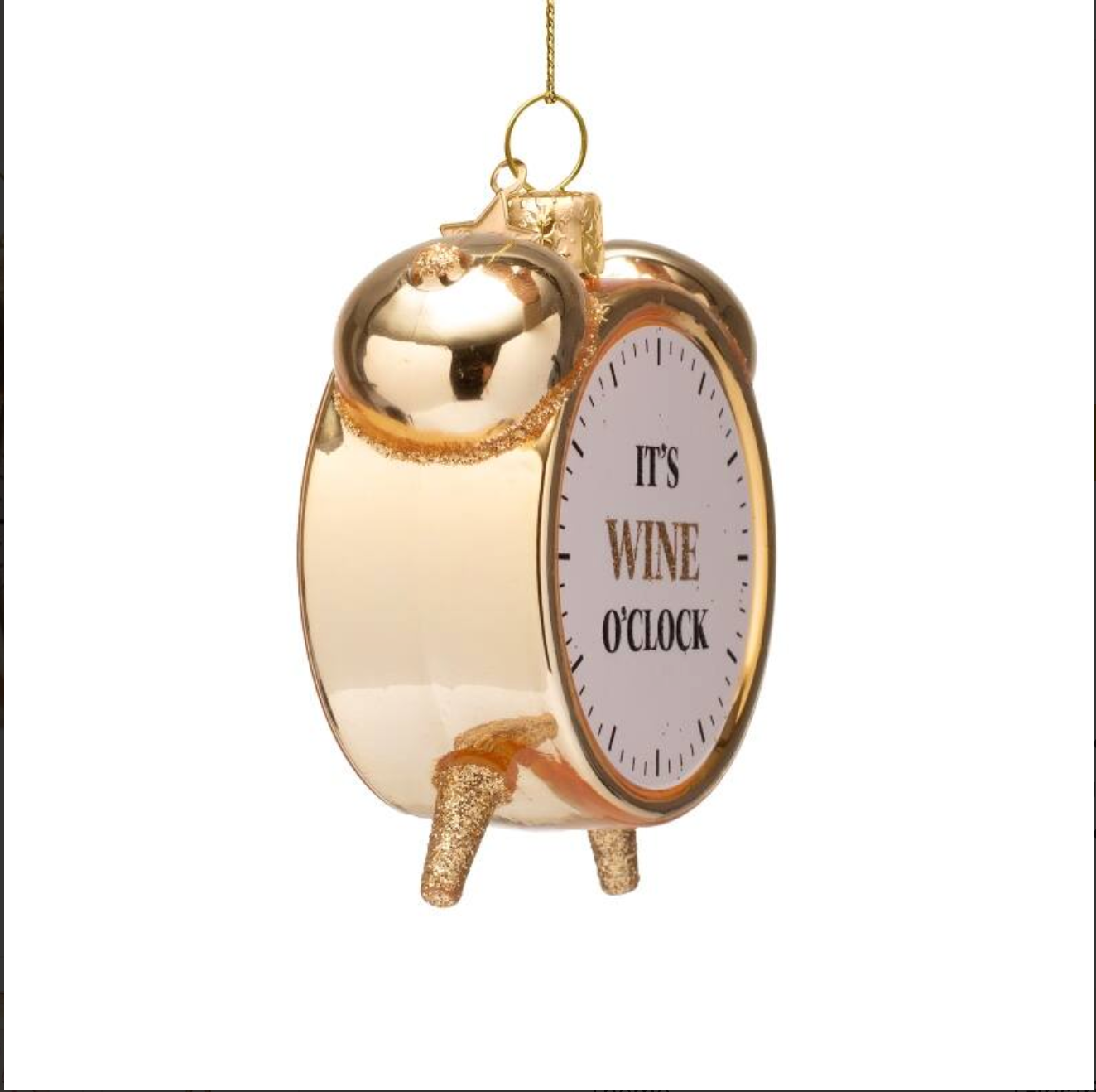 Ornament glass shiny gold wine o'clock alarm H9cm