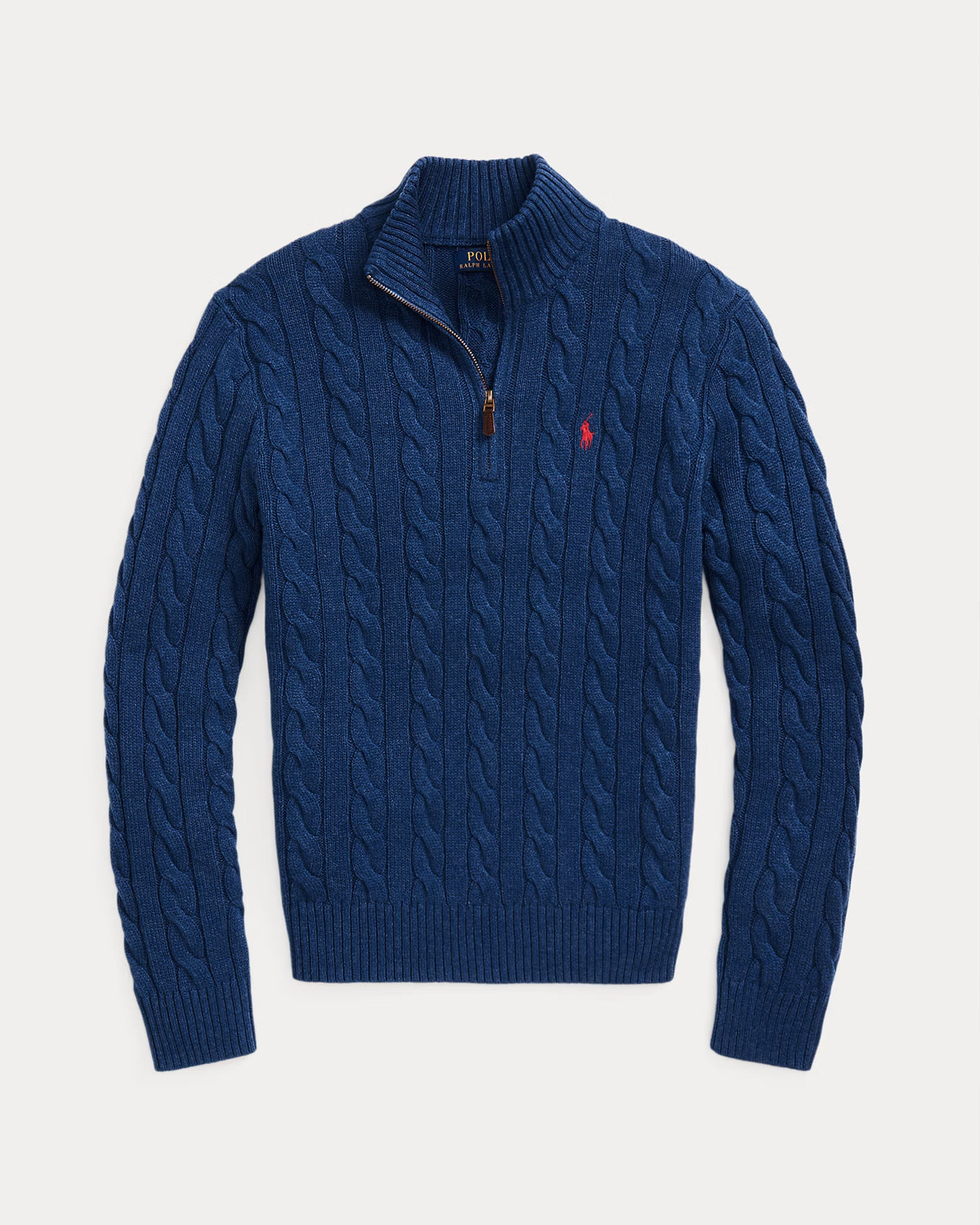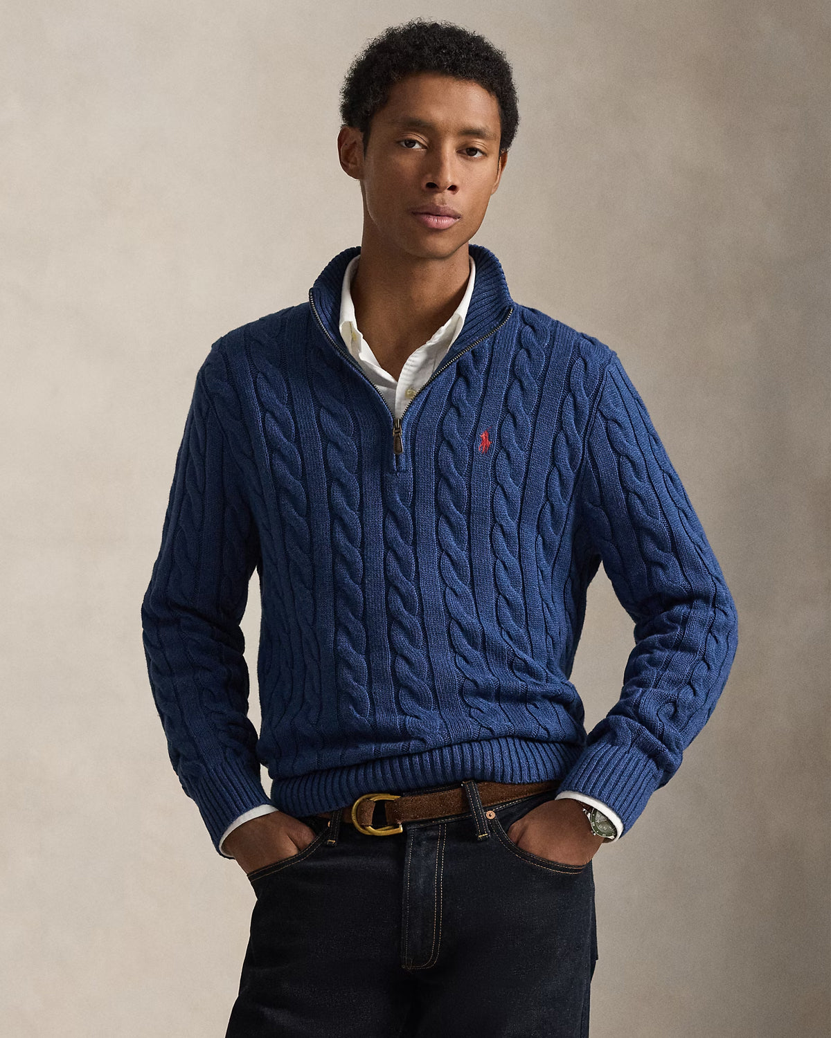CABLE-KNIT COTTON QUARTER-ZIP SWEATER
