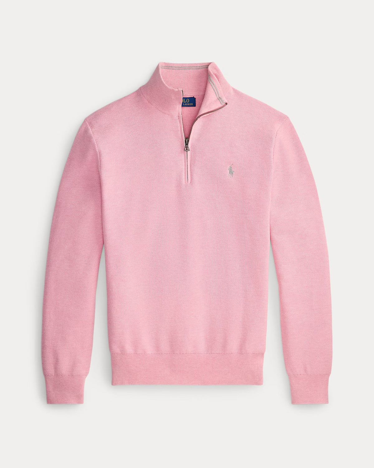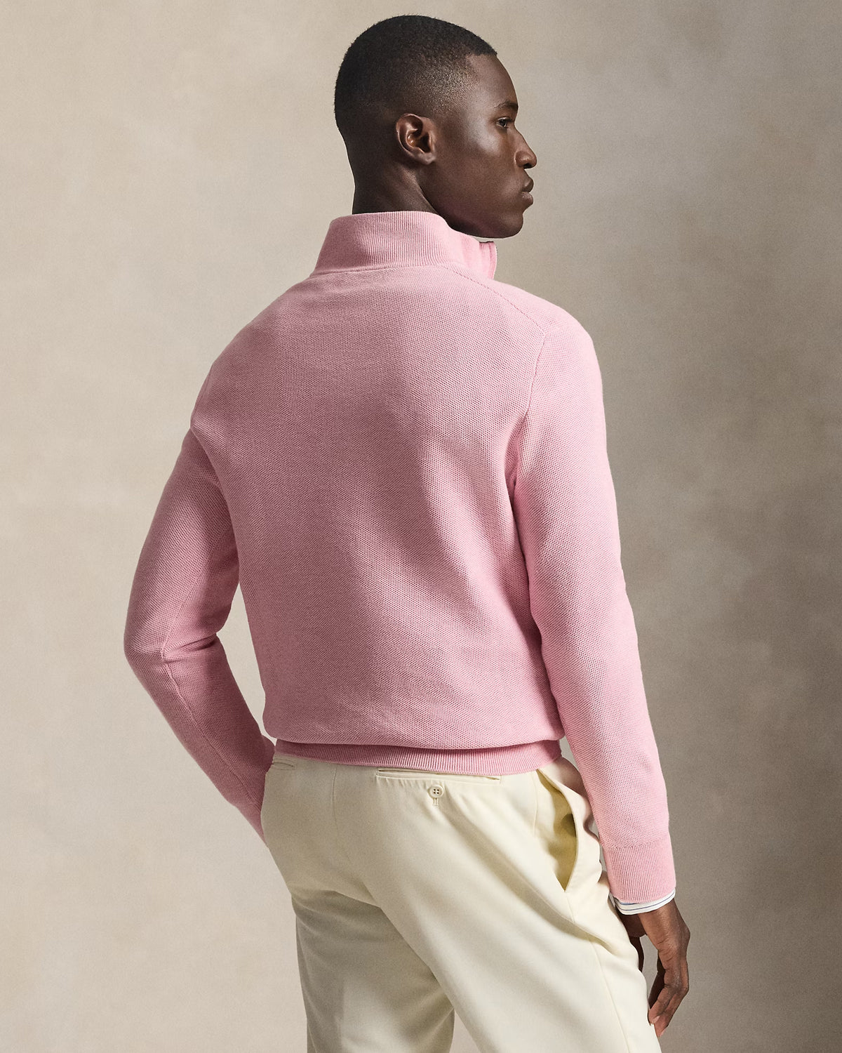 MESH-KNIT COTTON QUARTER-ZIP SWEATER