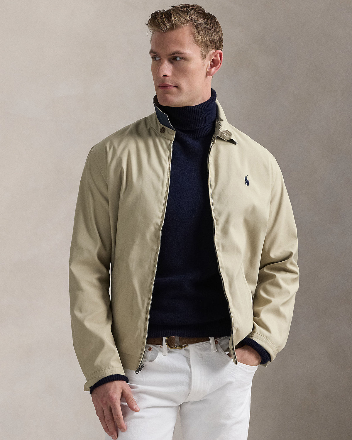 Størrelse medium har en lengde foran på kroppen: 68 cm, en lengde bak på kroppen: 67 cm, en skulderlengde på 51 cm, en brystlengde på 127 cm og en ermelengde på 89 cm. Ermelengden varierer med 2,5 cm mellom størrelsene. Spiss krage. Hel glidelås foran. Forlenget knapping i halsen. Lange ermer. Justerbare knappestropper i mansjettene. To vinklede lommer i midjen foran. Innvendig venstre brystlomme. Elastisk fald i sidene og bak. Helfôret. Brodert signaturpony på venstre bryst.