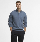 Blå half-zip genser fra Barbour. Cotton Half Zip kommer i en lett bomullsstrikk, glidelåslukkingen som er trimmet med tartan på innsiden og en brodert logo på brystet som fullfører utseendet.