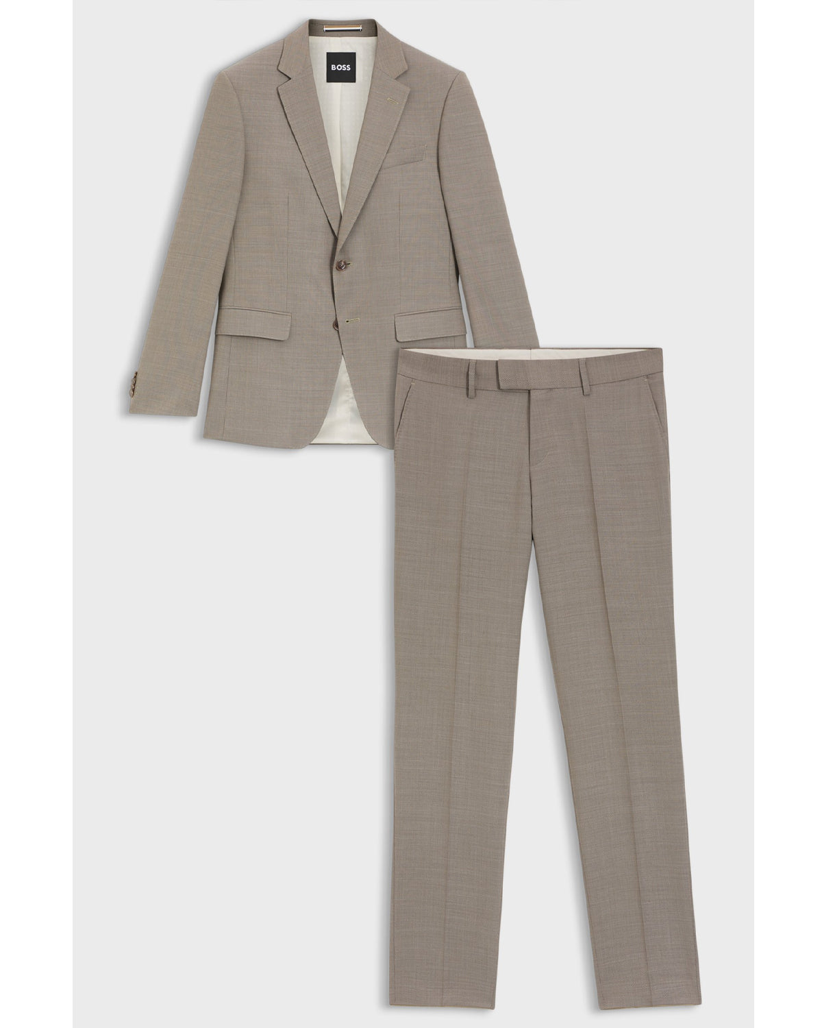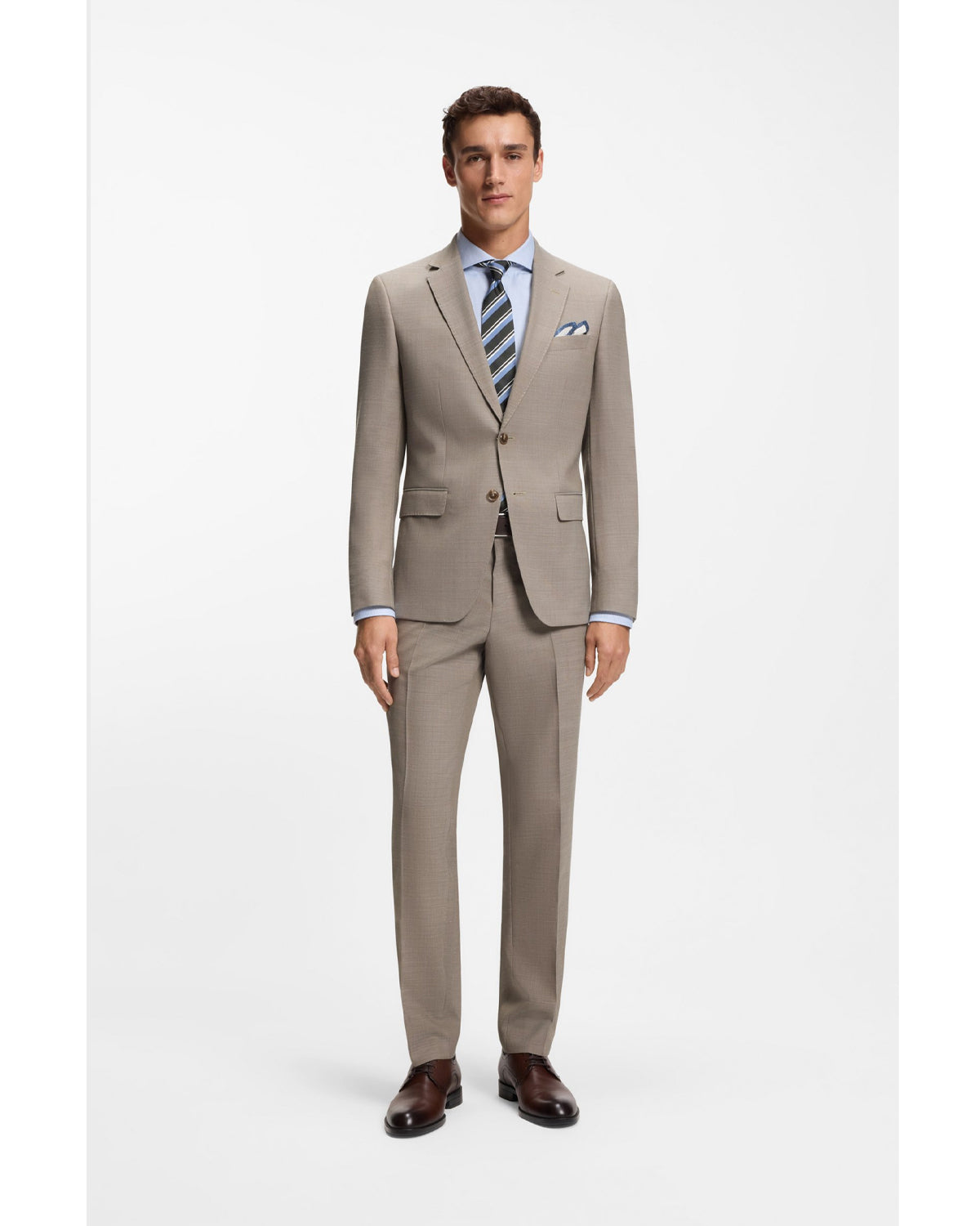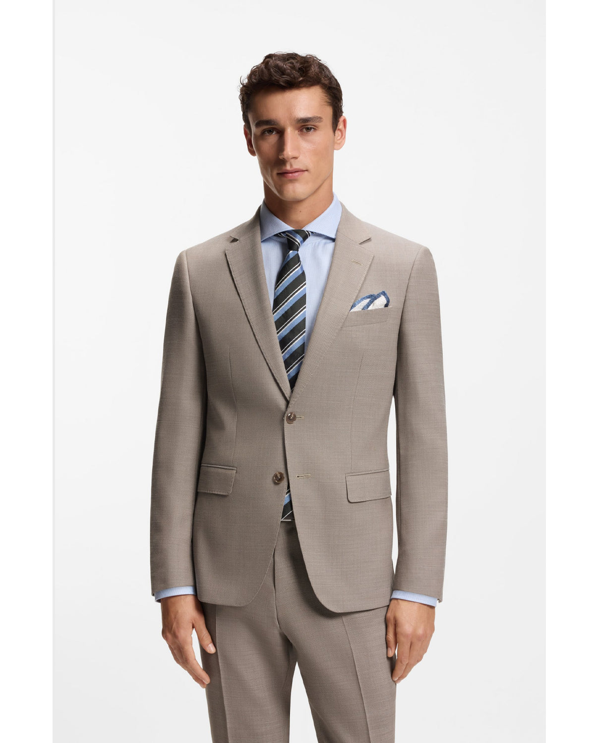 Gi din formelle rotasjon litt friskt inntrykk med denne todelte BOSS Menswear-dressen. Skreddersydd for en moderne, strømlinjeformet passform, er denne dressen laget av høypresterende stretchstoff med jomfruull for enkel bevegelse og et rikt utseende. Konstruerte skuldre og hakkslag understreker det moderne snittet.