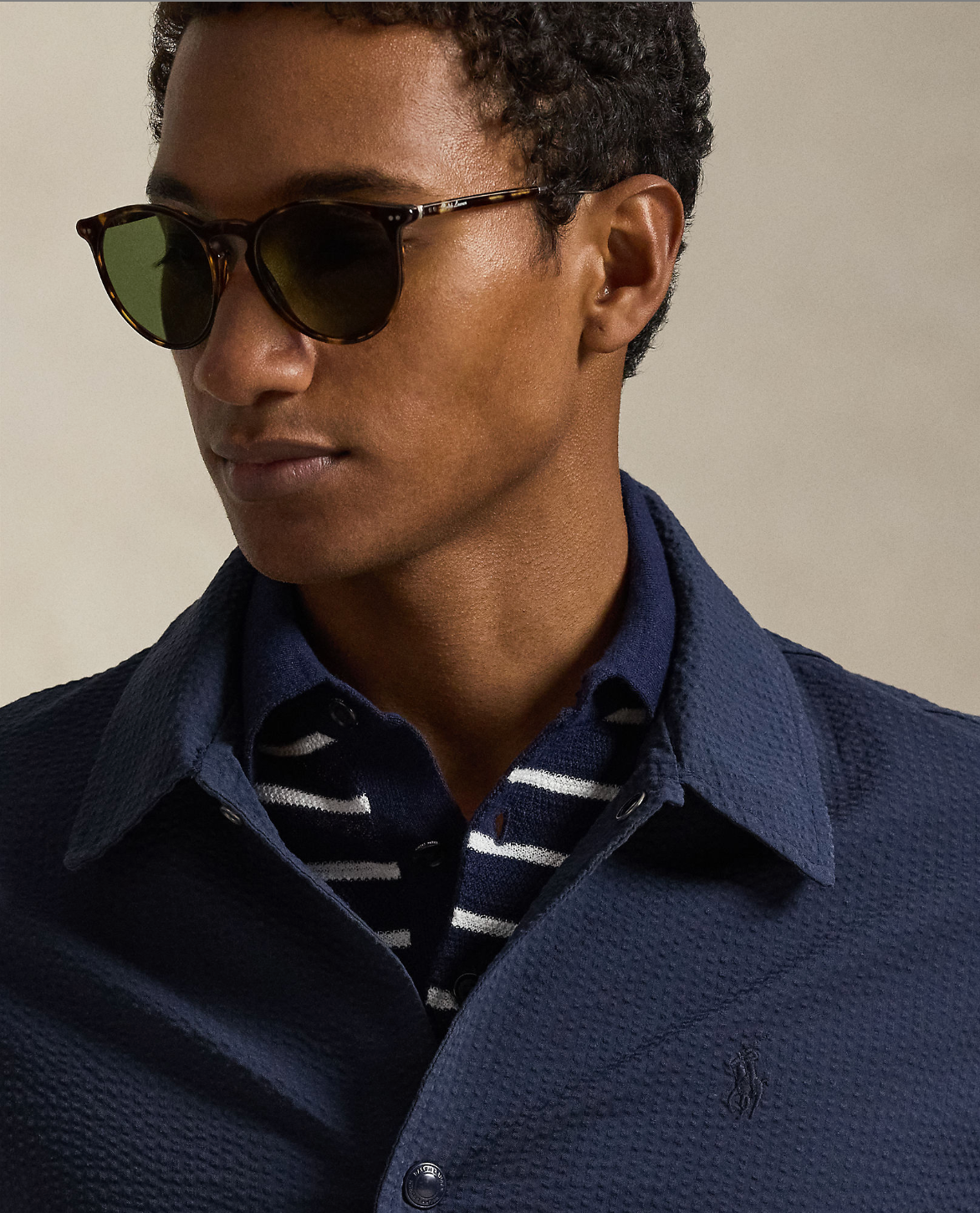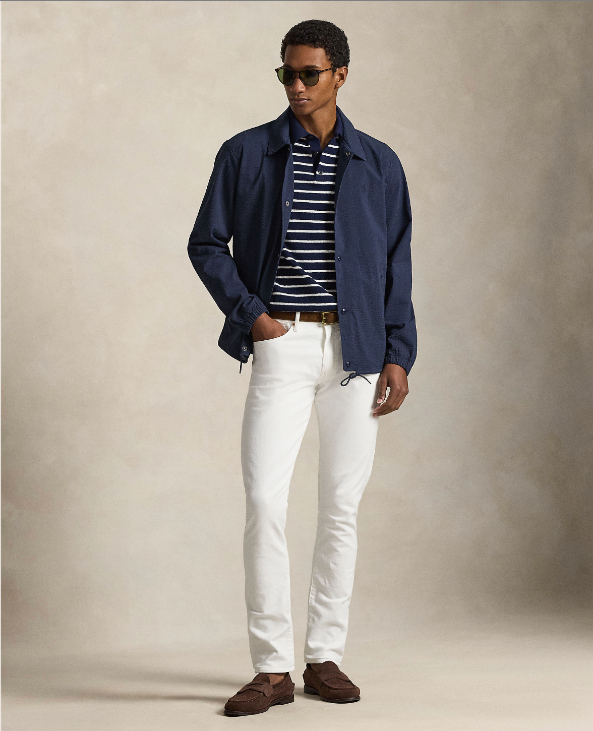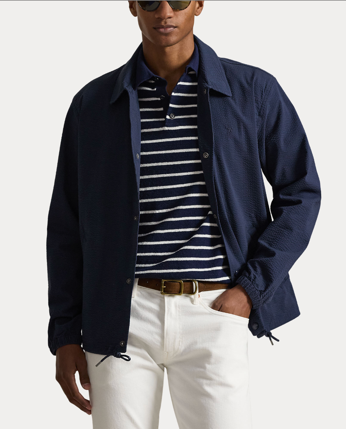 Dette lette laget forener silhuetten til en trenerjakke med et stretch seersucker-stoff som brukes i våre RLX-sportsklær for moderne stil med funksjonalitet.