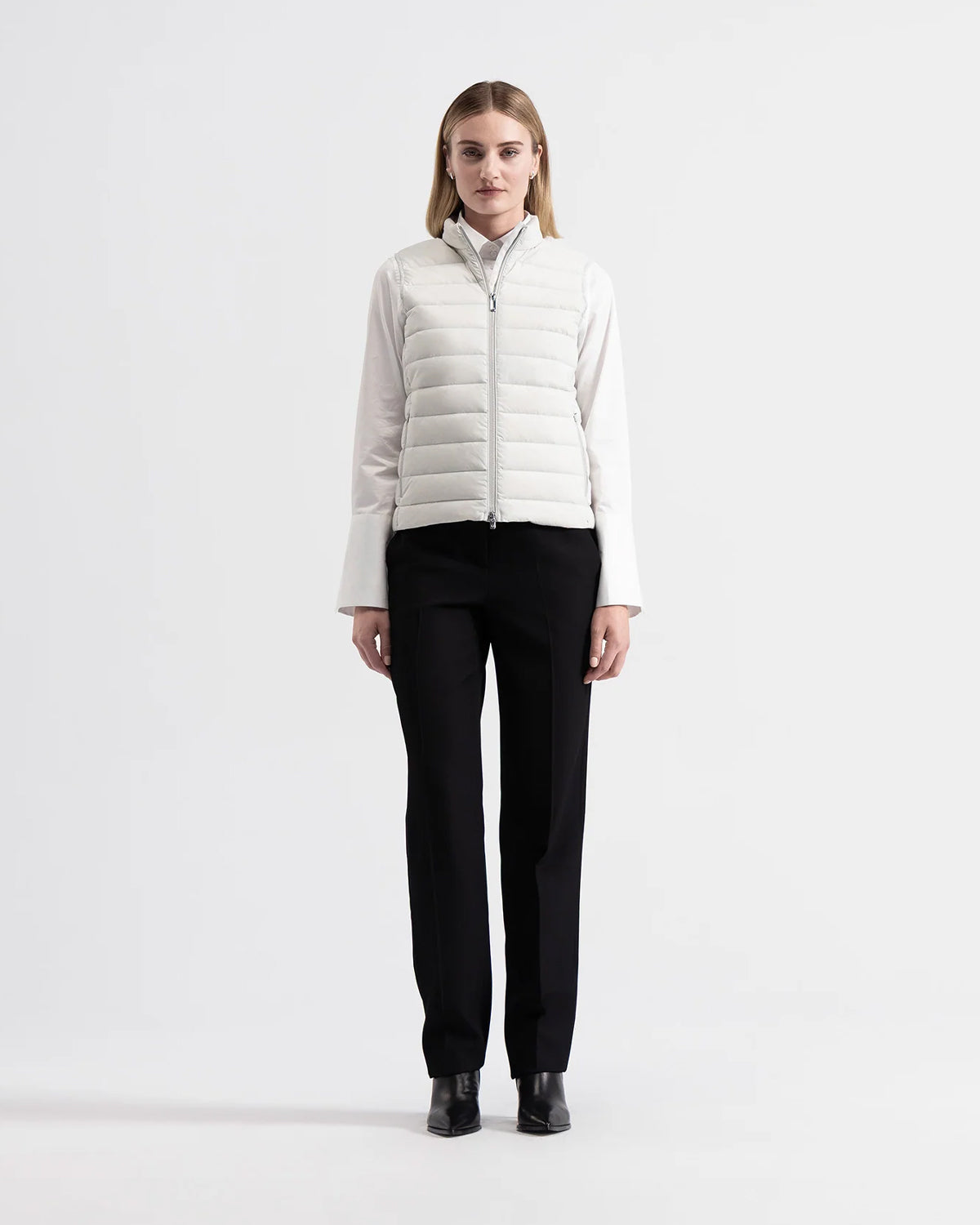 Det perfekte lag-på-lag-antrekket og allround-plagget for kontoret. Stilig, men varm, slik at du kan tilpasse antrekket ditt til enhver situasjon. Superlett, men likevel fylt med gåsedun av høyeste kvalitet. Fantastisk varme-til-vekt-forhold.