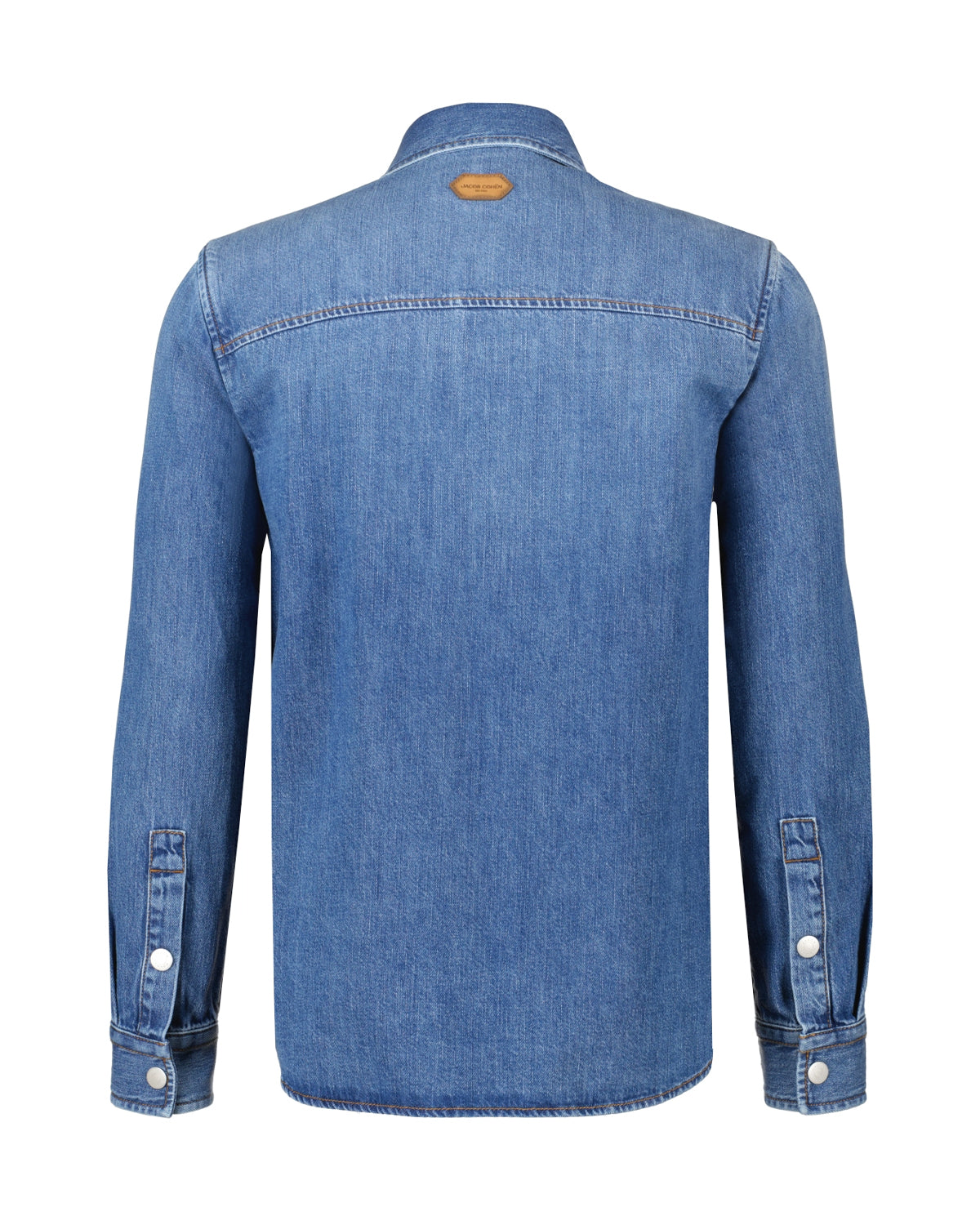 Jacob Cohen klassisk jeansskjorte med knapper i mellomblått.