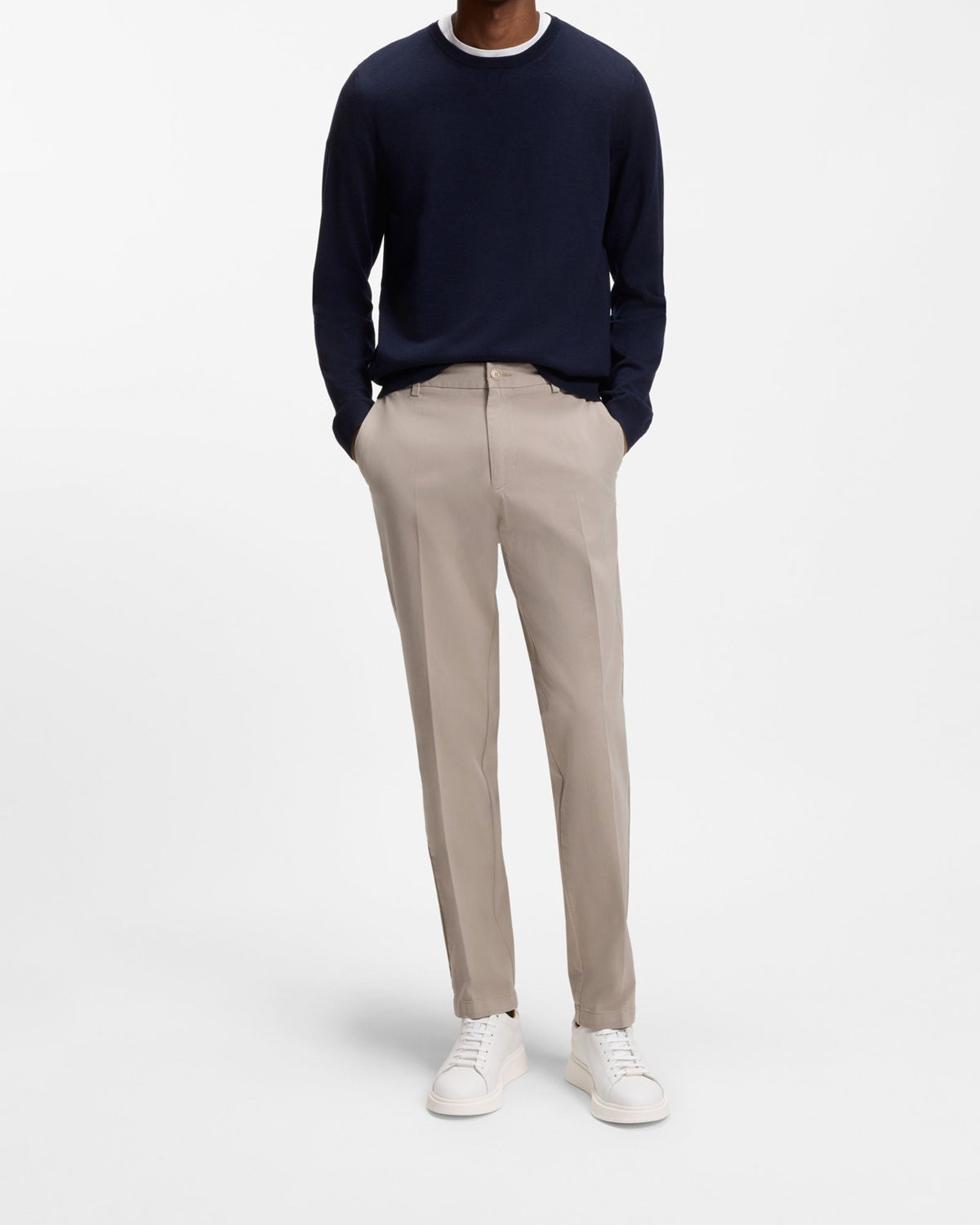 Disse BOSS Menswear-buksene har en moderne, avsmalnet passform og er et ideelt, avslappet grunnlag. Fineste gabardin-twill laget av elastisk bomull. Dette produktet inneholder minst 80 % bedre råvarer. Dette plagget er laget med minst 80 % bomull utvunnet fra regenerativt landbruk. Regenerativt landbruk prioriterer bevaring og restaurering av naturlige miljøer, med sikte på å forbedre biologisk mangfold, opprettholde vannkvaliteten og forbedre jordhelsen.