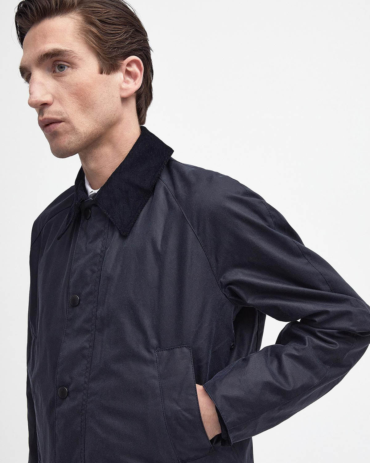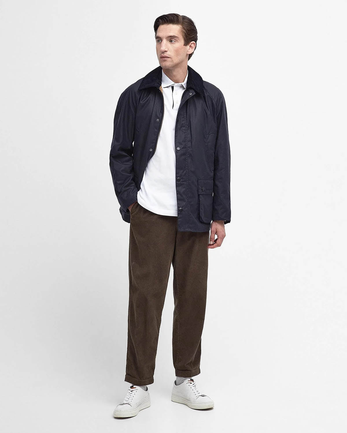 Ashby Wax Jacket fra Barbour. Vokset bomullsjakke til herre med det klassiske Tartan-fôret på innsiden. Jakken er slank i modellen, men tillater en god genser under eller vesten du kan kjøpe til jakken.