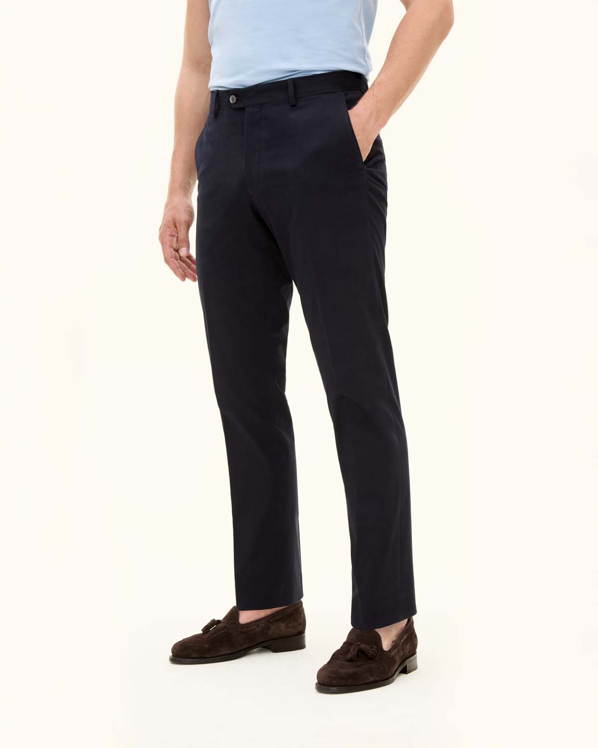Disse buksene har en slim fit. De er designet med et tidløst ensfarget mønster og laget med vevd konstruksjon. Laget av en myk bomullsblanding. En moderne klassiker som balanserer stil og komfort.