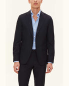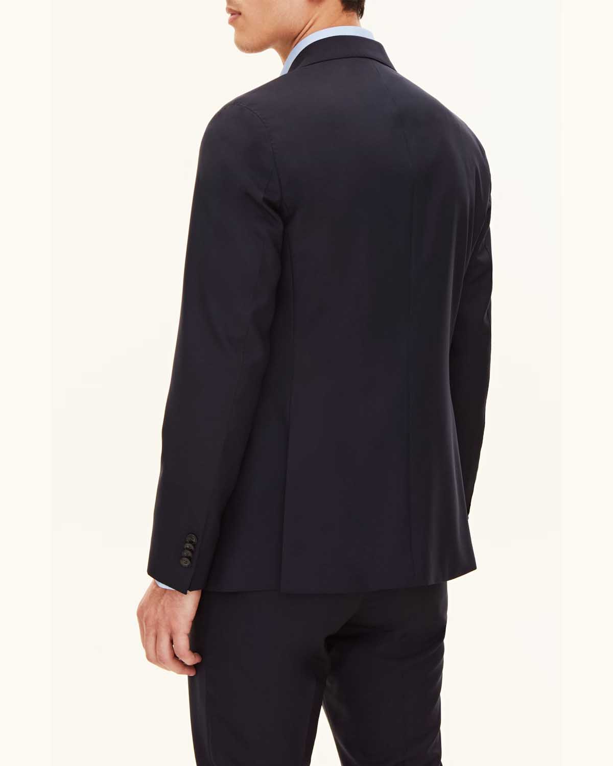 Enkeltspent blazer i slim fit laget av italiensk super 120-tallsull. Blazeren har en helfôret innside, en myk konstruert skulder og klafflommer.