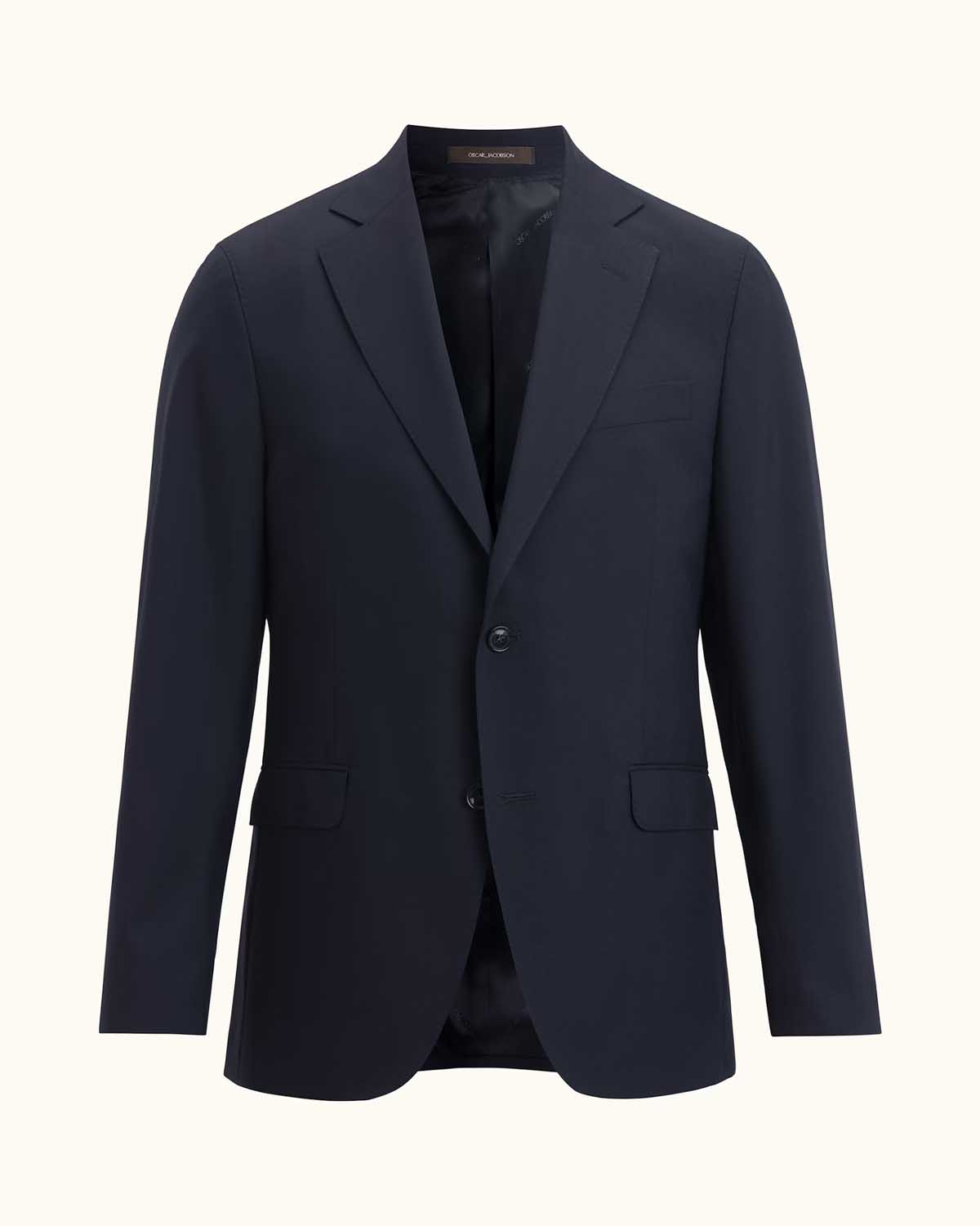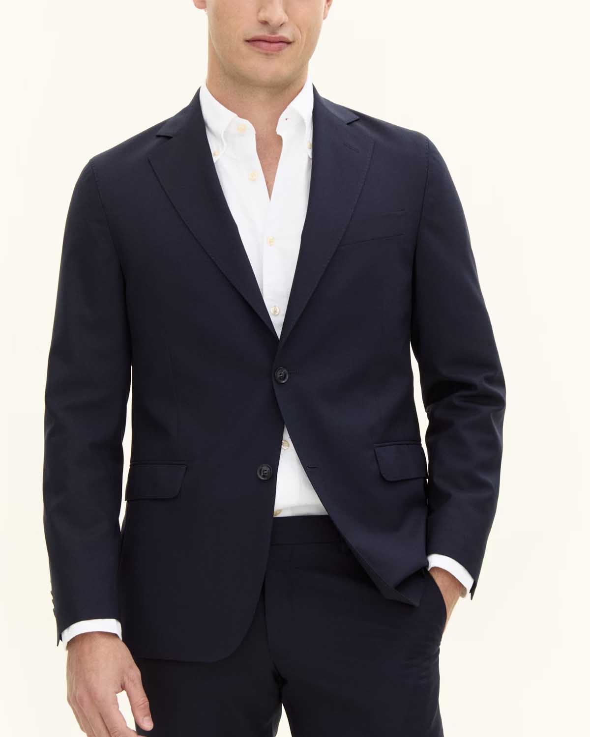 Enkeltspent blazer i normal passform med fôret innside, supermyke skulder- og klafflommer. Laget av en super 120 ull fra Italia.