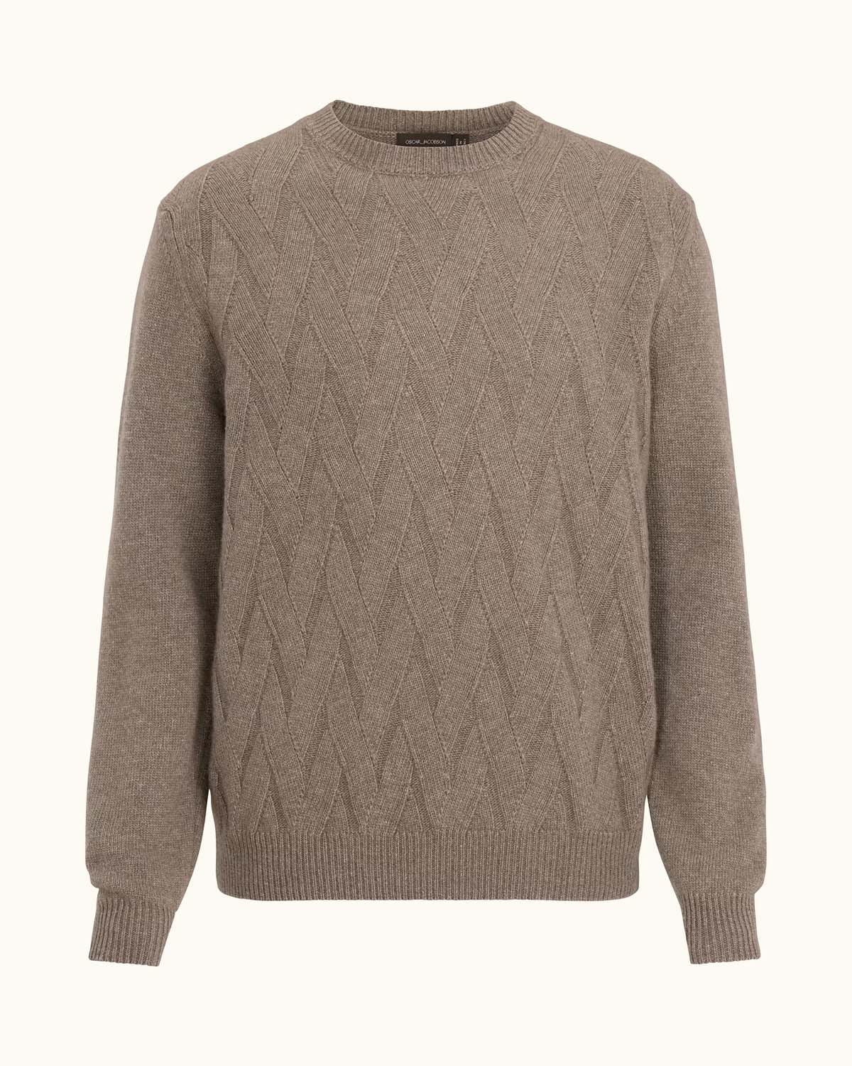 Genser med rund hals med unik struktur foran. Laget i en myk blanding av ull, kasjmir og viskose. Strikket i 7gg med 3-lags, som gir et sterkere plagg som er ideelt for kjølige høstdager.