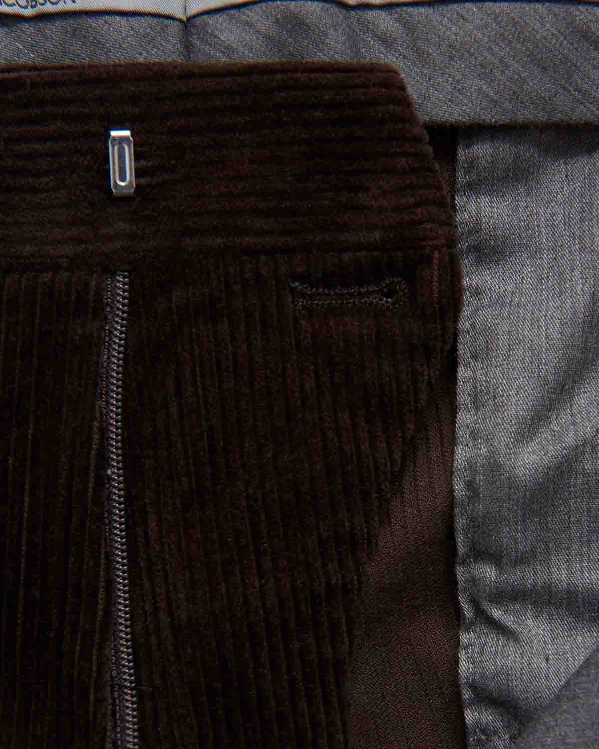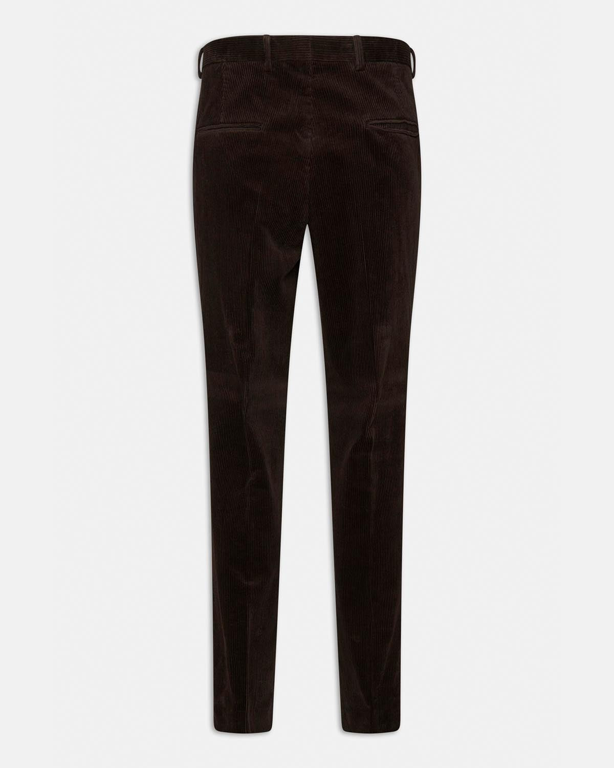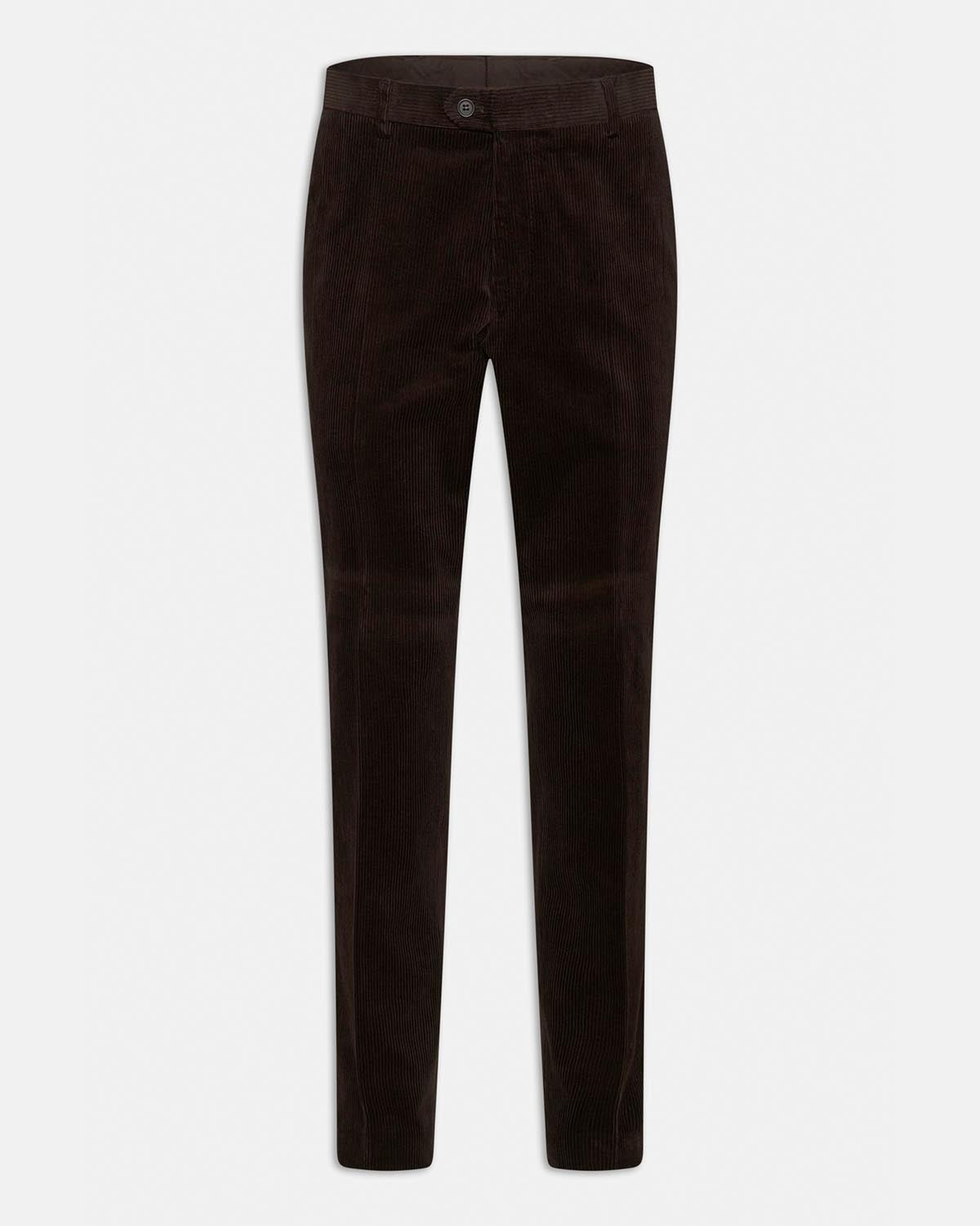 Mørk brun bukse i myk kordfløyel fra Oscar Jacobson! Denz Corduroy Trousers har en slim passform og lukkes med glidelås og hempe.