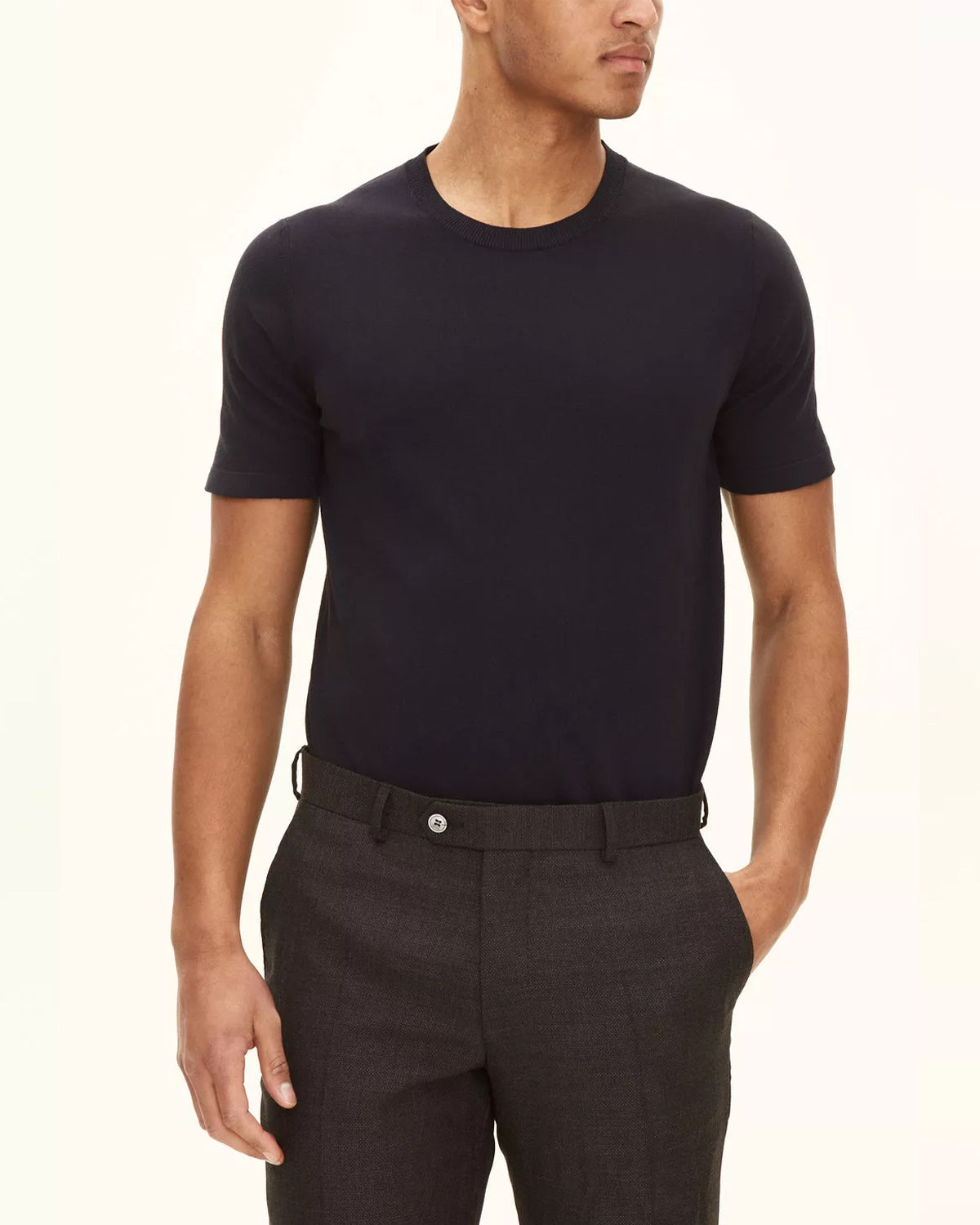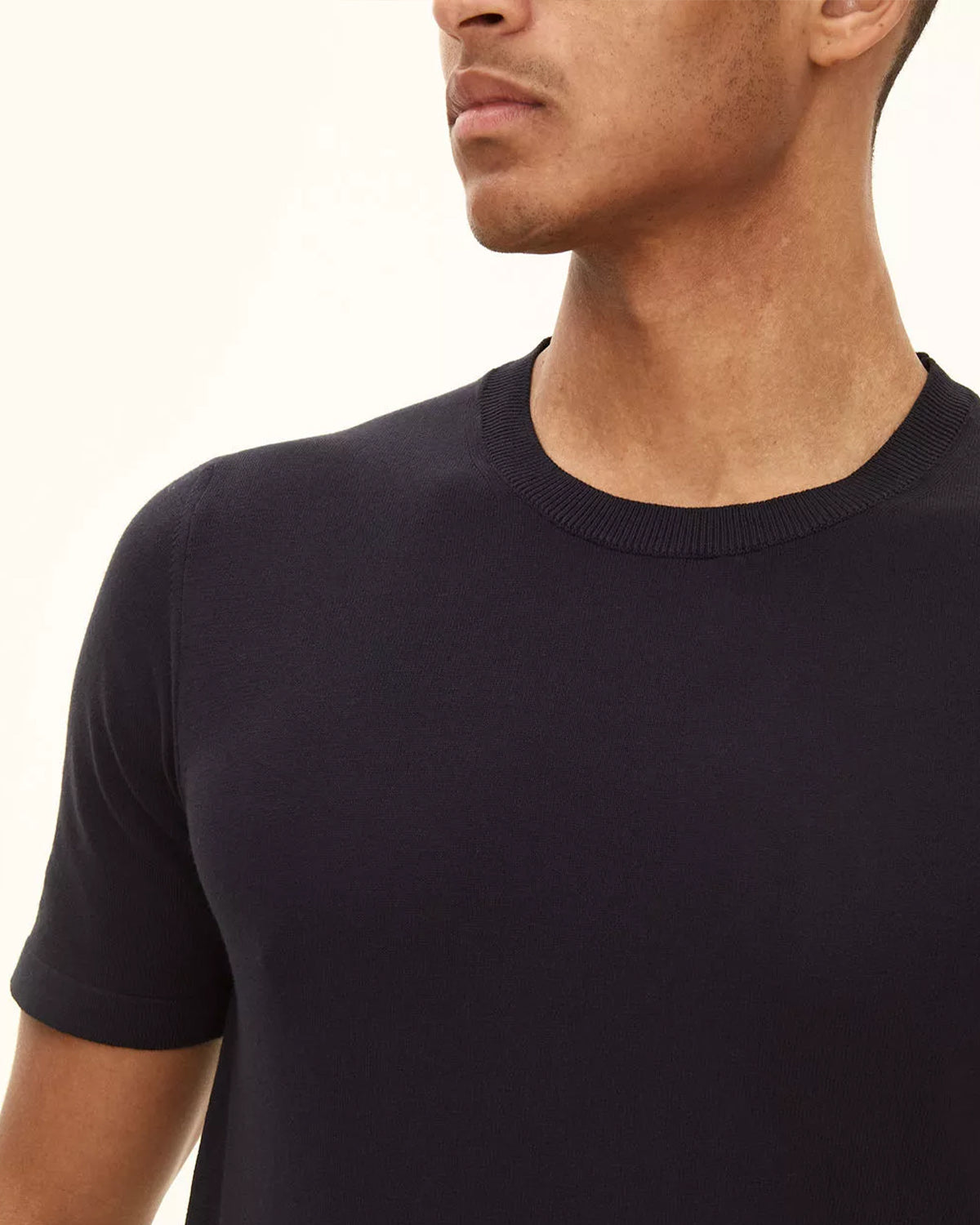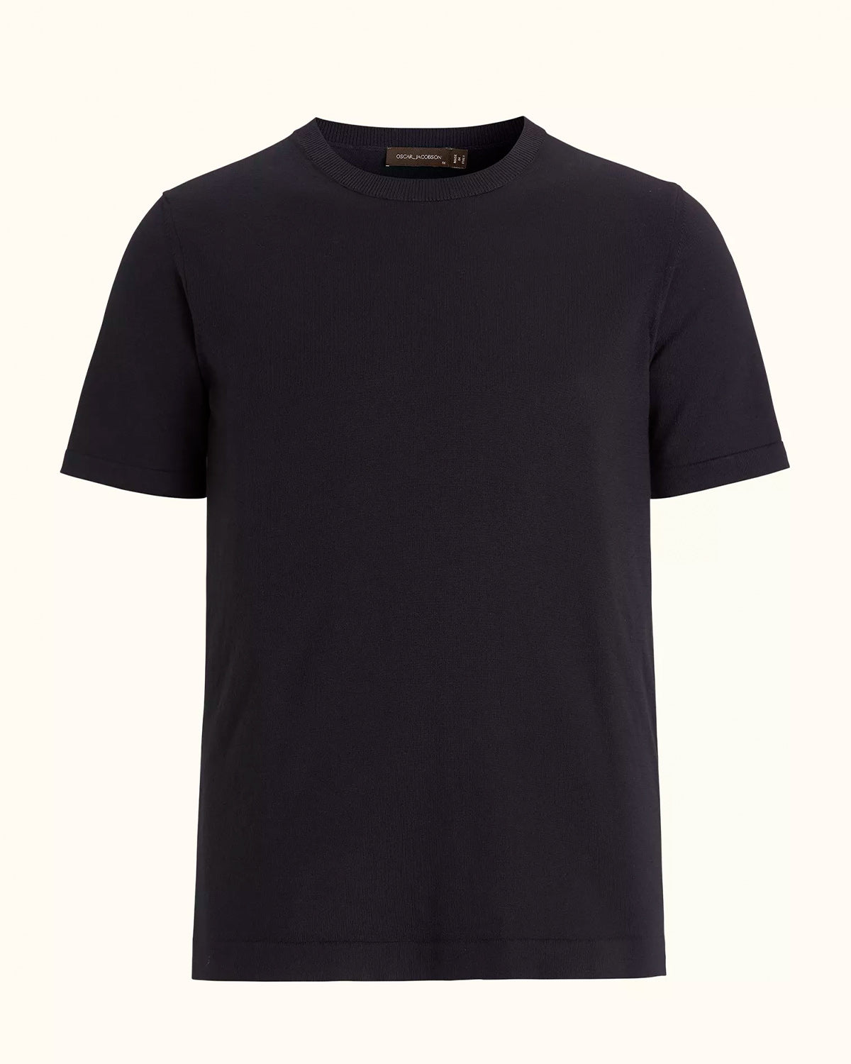 Blå t-skjorte fra Oscar Jacobson. Brian er et slim fit strikkeplagg laget av 100% bomull. T-skjorten har rund hals, korte ermer og et ensfarget strikkemønster.