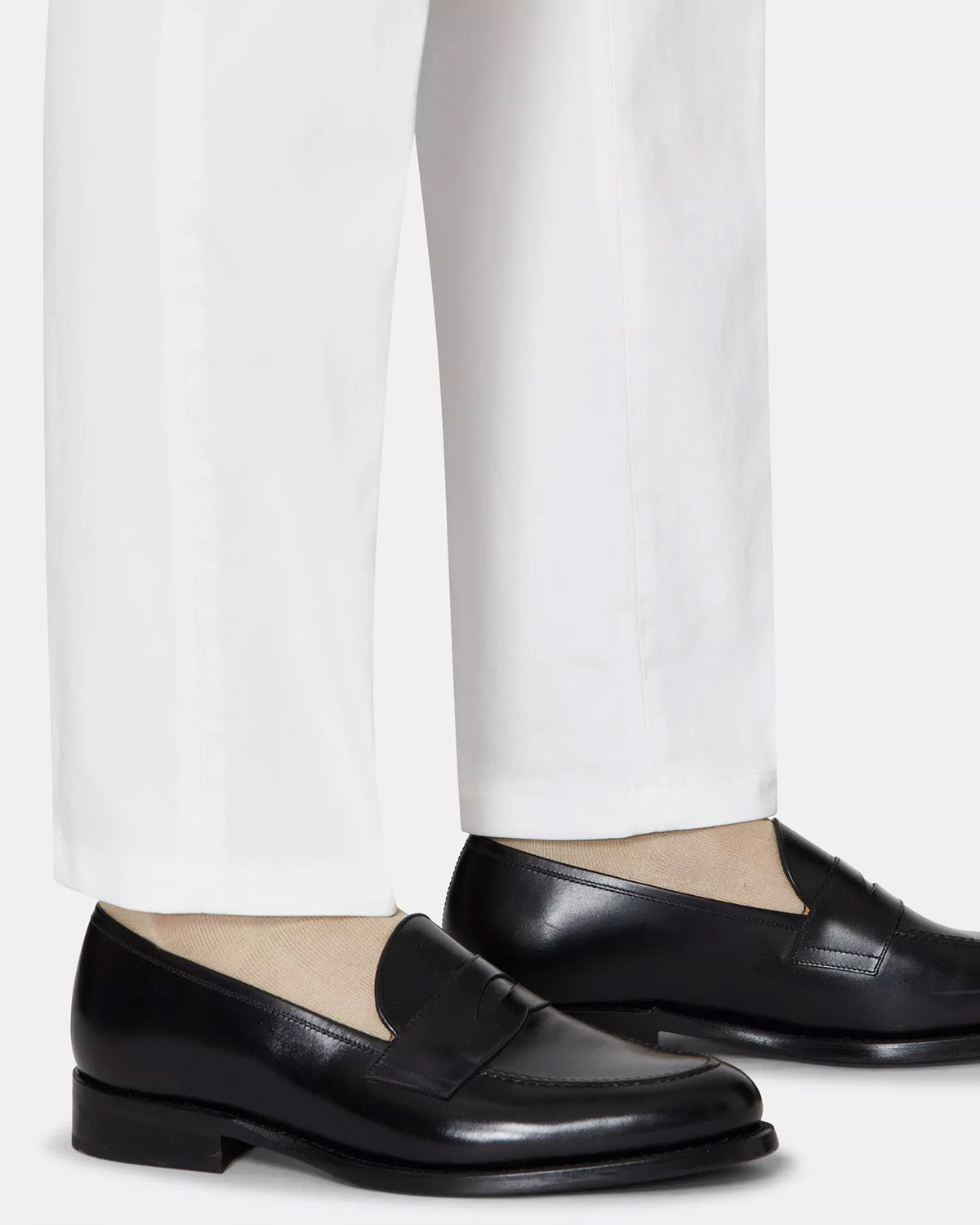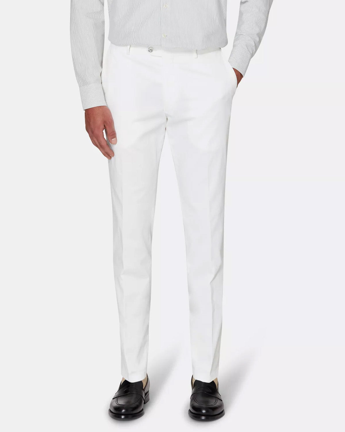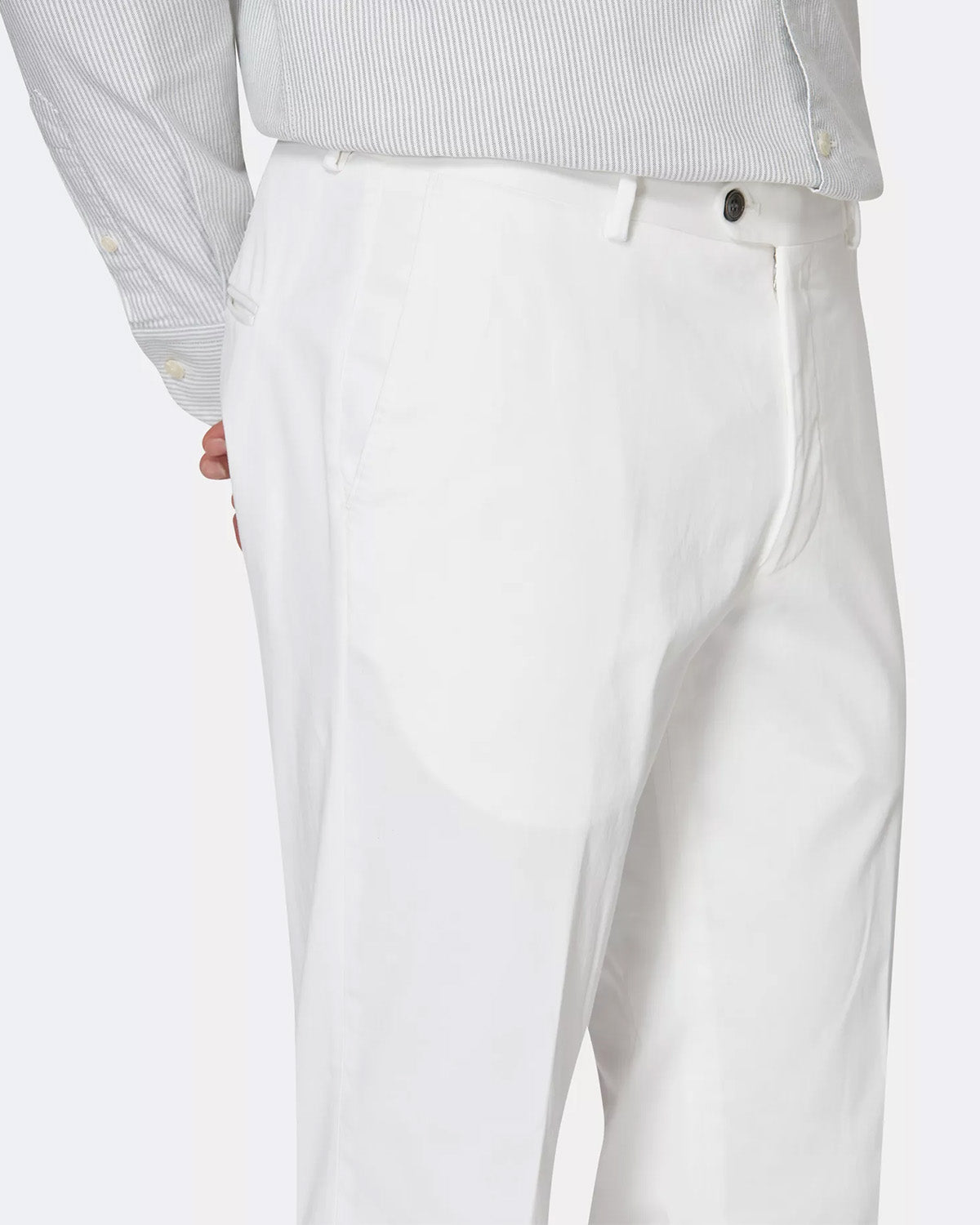 Bukse med en smal passform og normal høy midje, beltehemper og avsmalede ben. Laget av et tynnere mykt bomullsstoff.