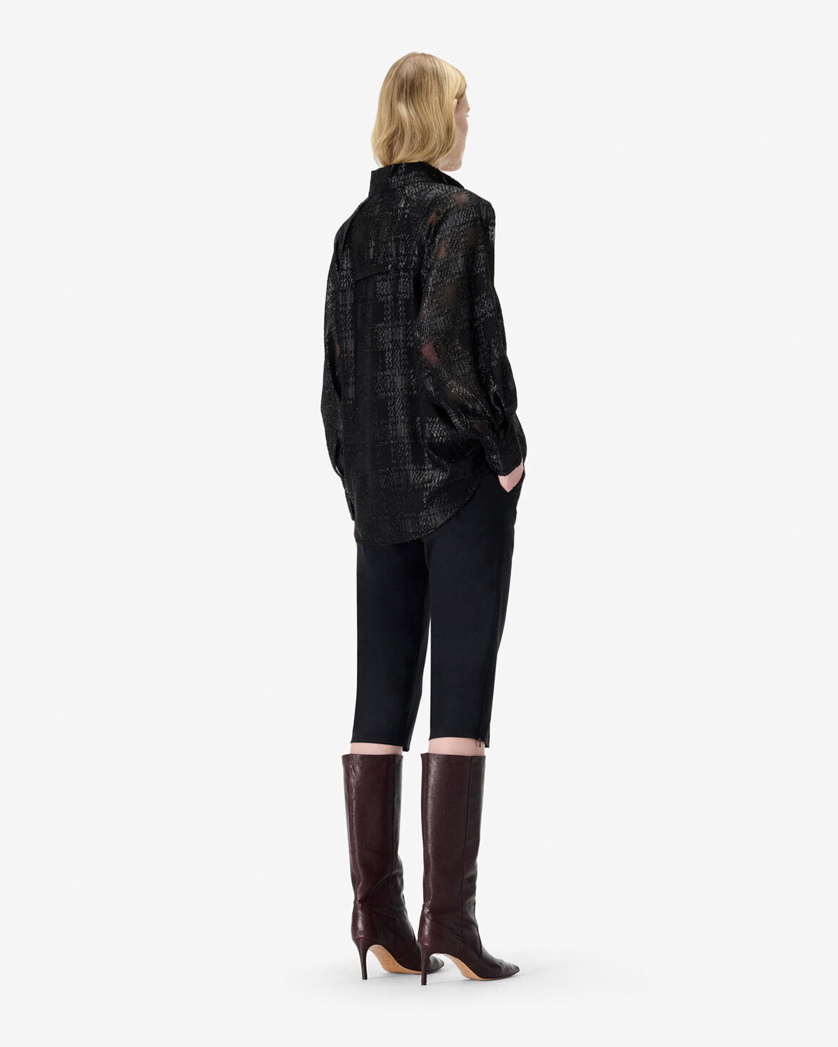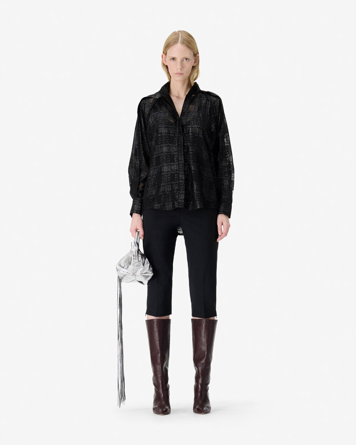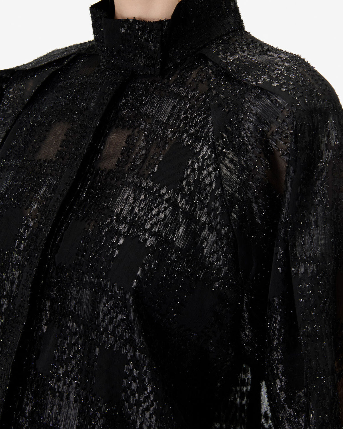 VALMU lurexskjorte. Høy krage og utskjæringer foran og på skuldrene.