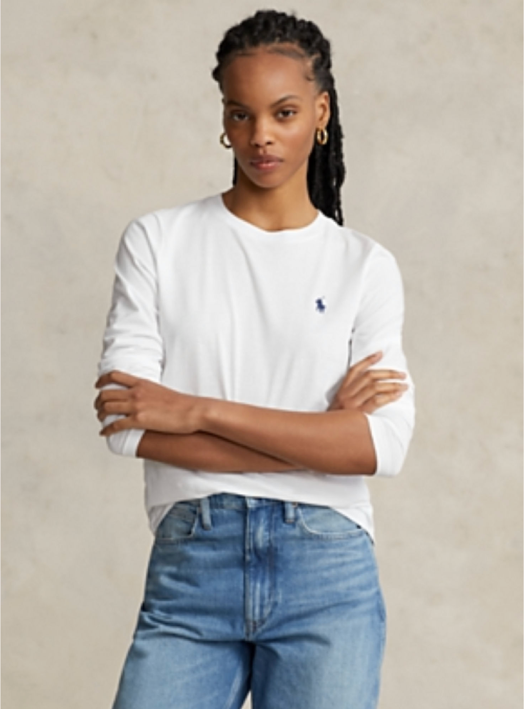 Laget med pustende bomullsjersey, denne langermede rundhals-t-skjorten er kuttet i en rett passform og omhyggelig brodert med vår signaturponny på venstre bryst.
