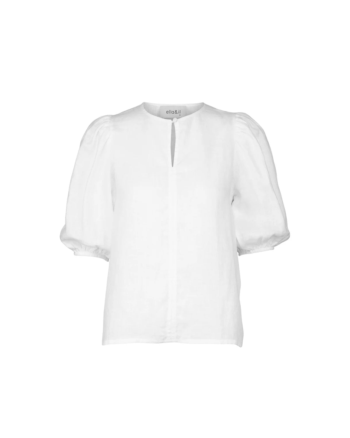 Denne toppen er i en fantastisk linkvalitet. Har rund hals med knapp og rynkede skuldre. Brede ermer med strikk som stopper før albuen.