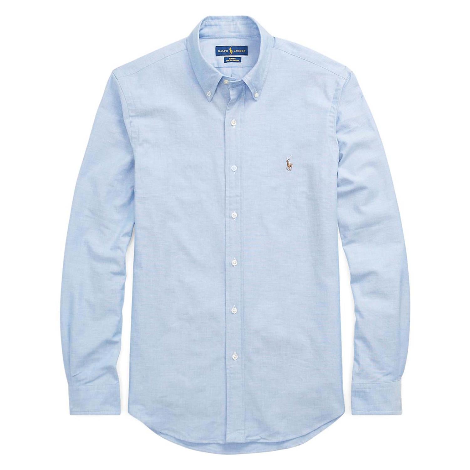 Lys blå bomullsskjorte i slim fit fra Polo Ralph Lauren! Skjorten har button down-krage, lang erm og knappelukking foran. Slim Fit Oxford Shirt fullføres av den ikoniske polospilleren brodert i naturfarger på brystet.